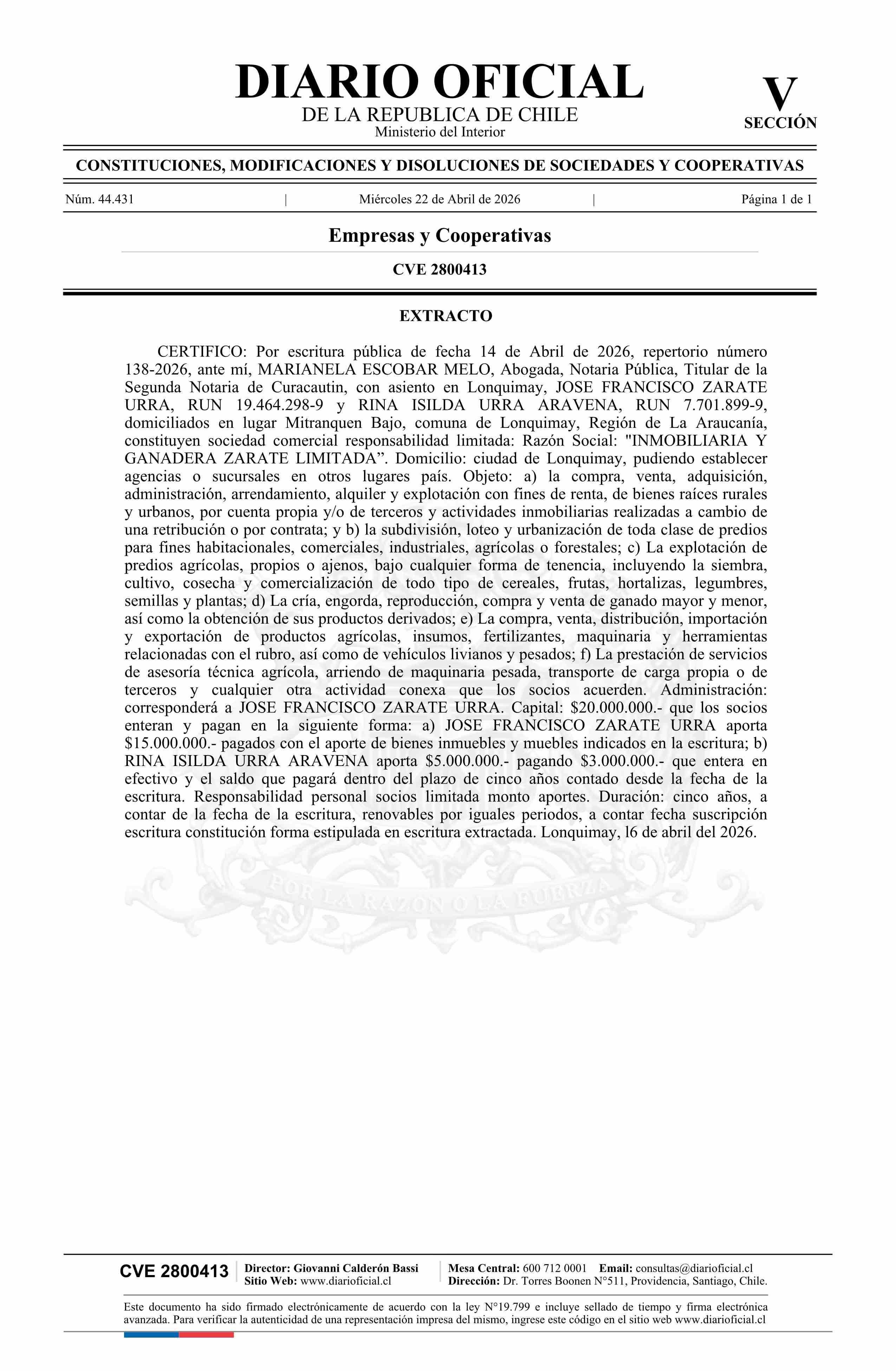 Diario Oficial Edición Electrónica (Diario Oficial de Chile - 5 Empresas Y Cooper)