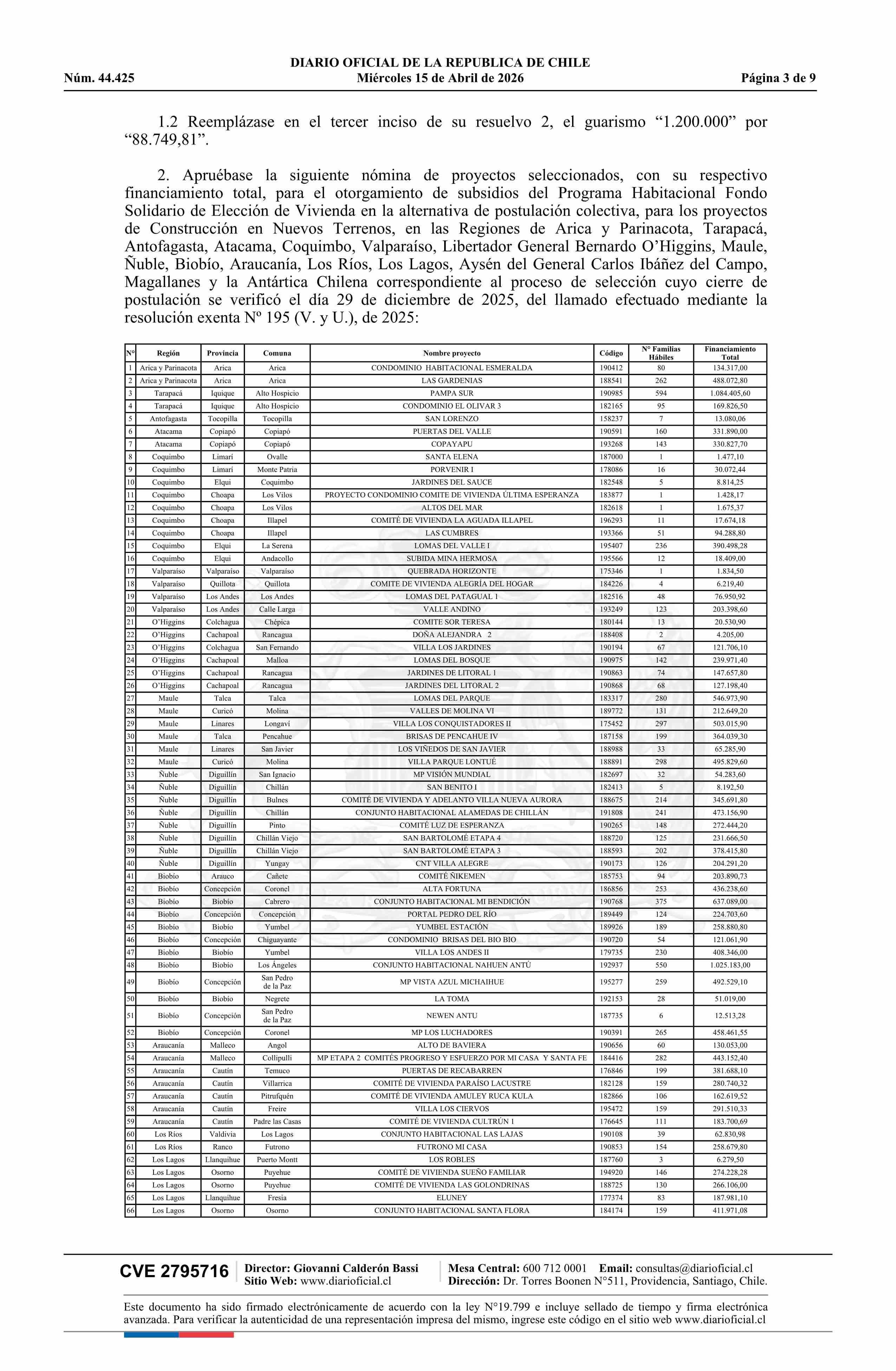 | Título: | Resolución exenta número 581, de 2026.- Modifica resolución Nº 195 exenta, de 2025, que llama a proceso de selección en condiciones especiales para el otorgamiento de subsidios del Programa Habitacional Fondo Solidario de Elección de Vivienda, regulado por el decreto Nº 49, de 2011, y sus modificaci |