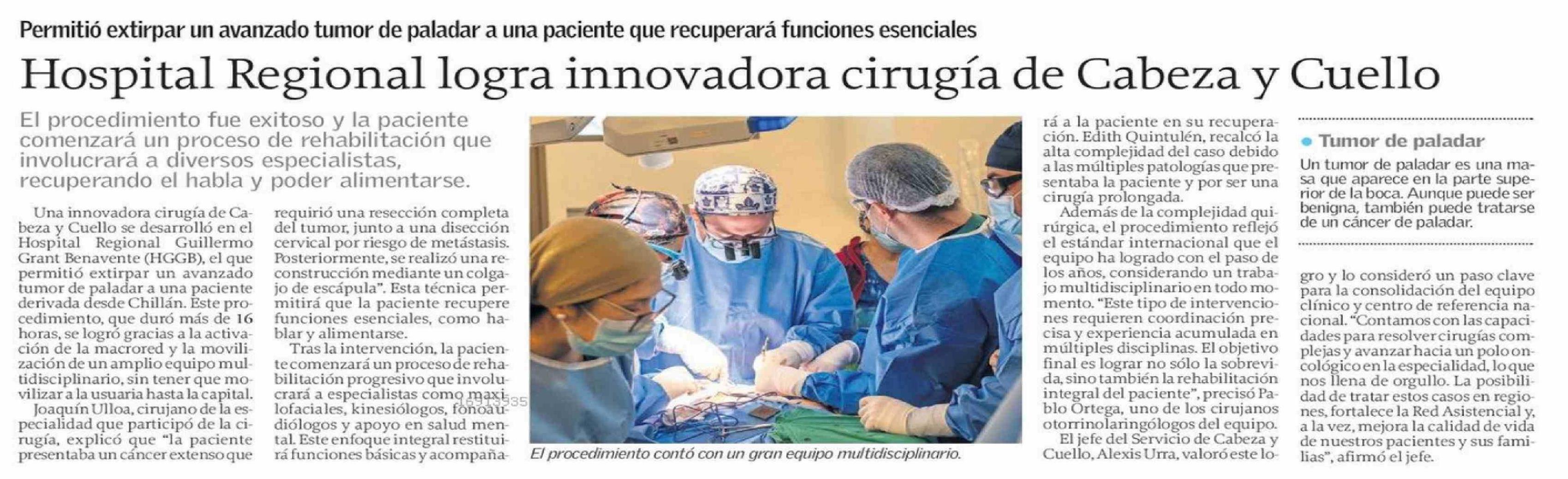 Título: Hospital Regional logra innovadora cirugía de Cabeza y Cuello