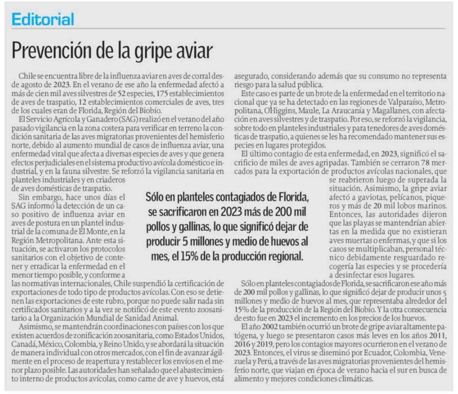 Columnas de Opinión: Prevención de la gripe aviar