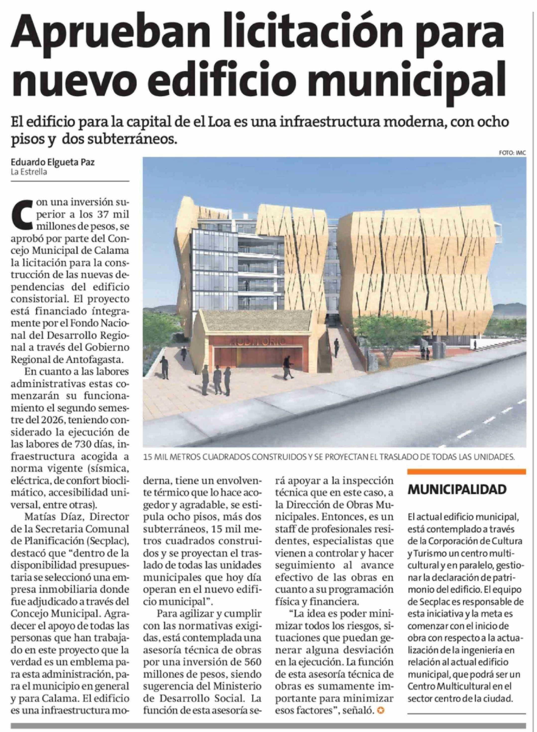 Aprueban licitación para nuevo edificio municipal