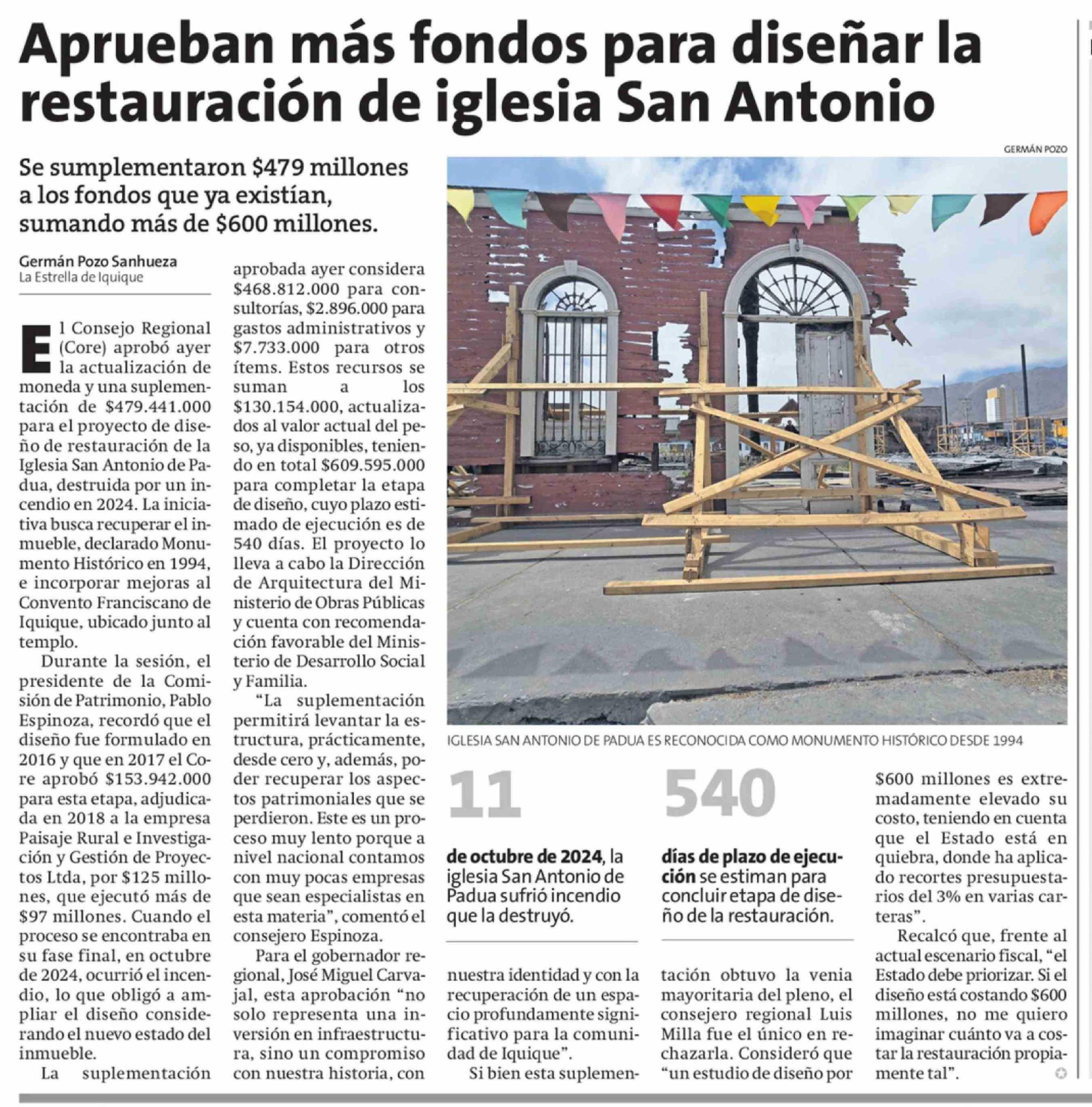 Aprueban más fondos para diseñar la restauración de iglesia San Antonio