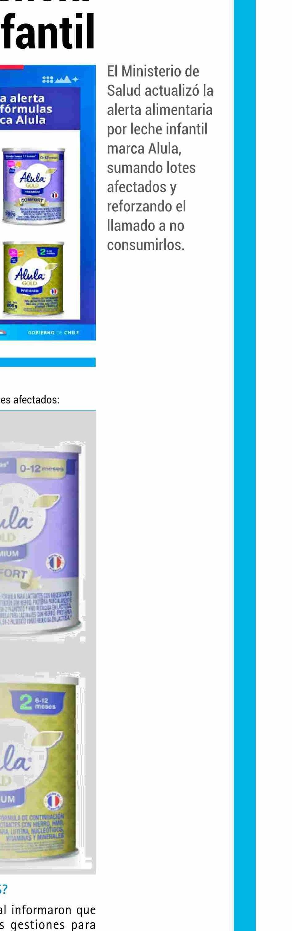 Minsal emite alerta alimentaria por presencia de toxina en leche infantil