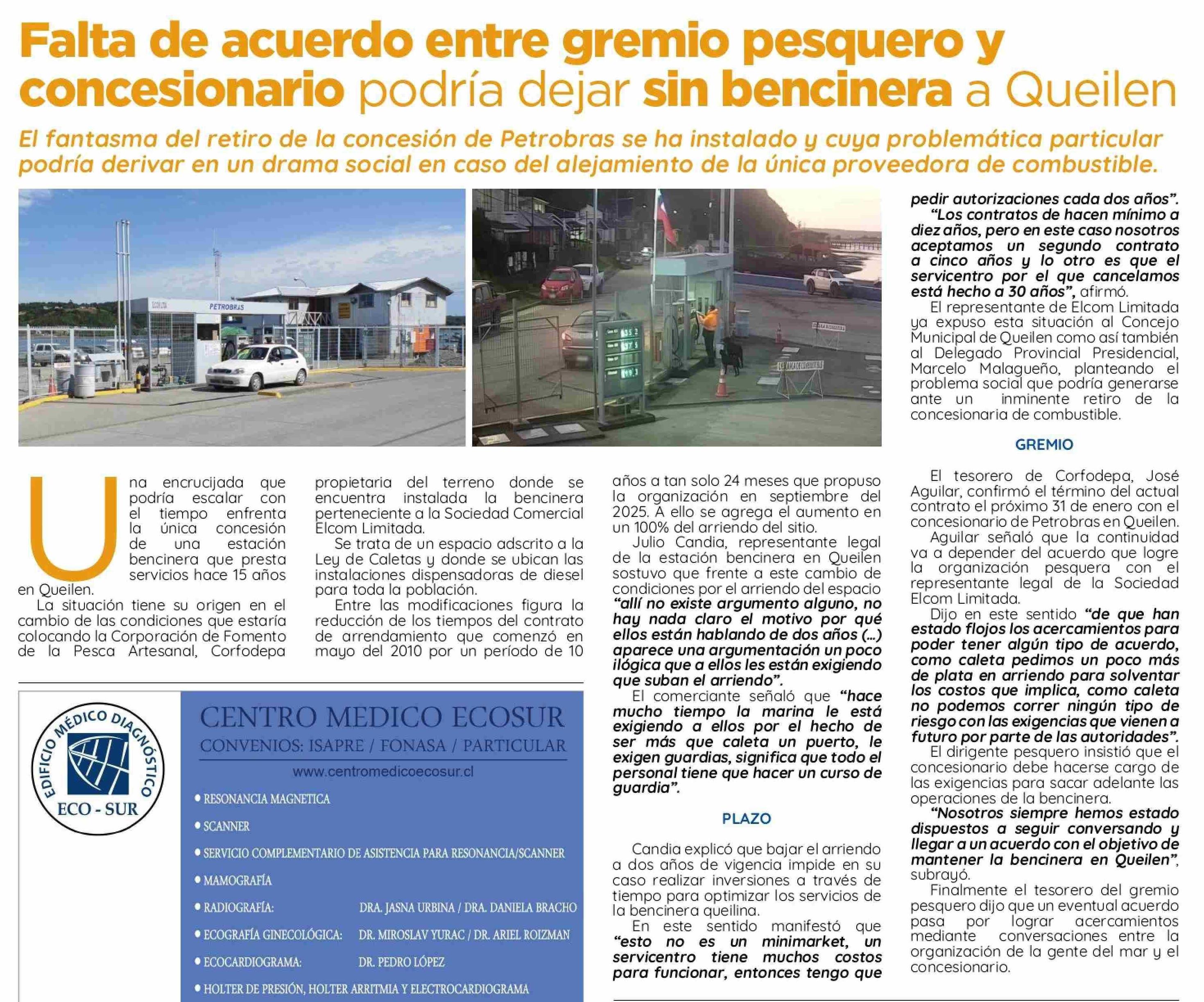 Falta de acuerdo entre gremio pesquero y concesionario podría dejar sin bencinera a Queilen
