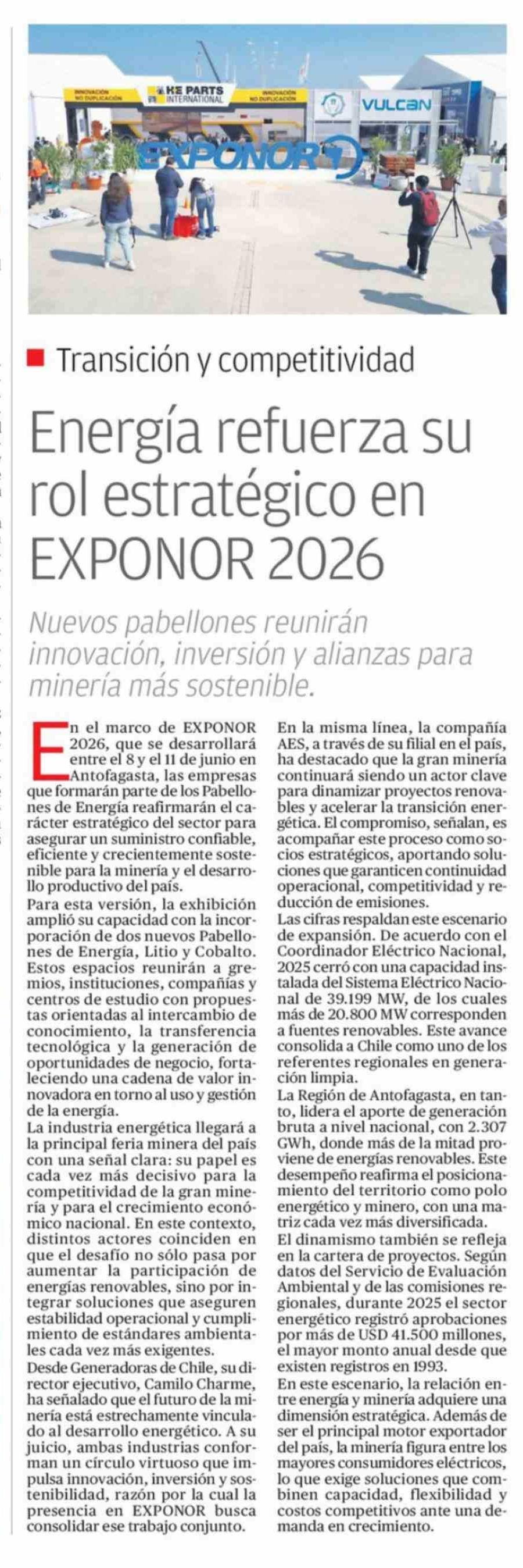 Energía refuerza su rol estratégico en EXPONOR 2026