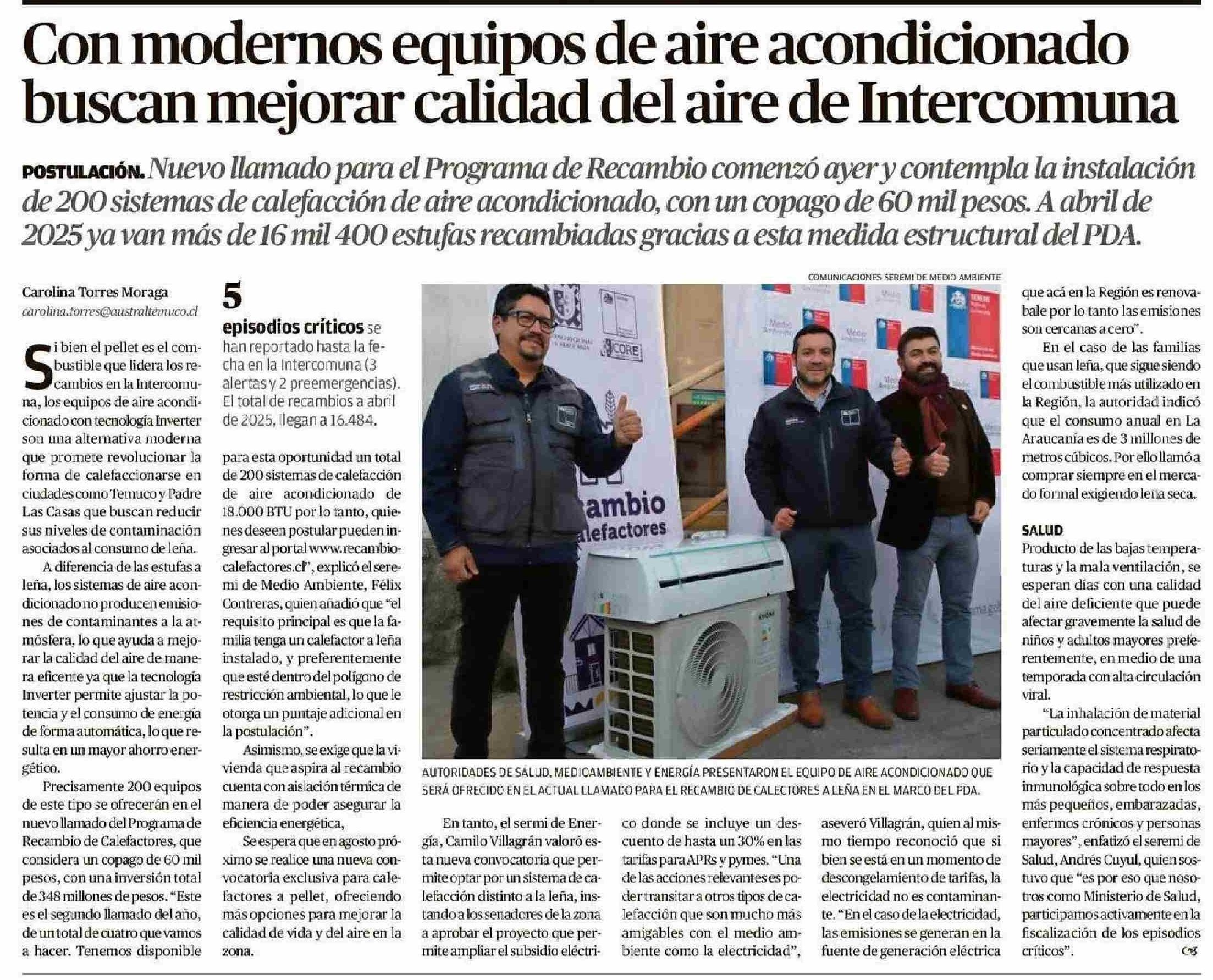 Con modernos equipos de aire acondicionado buscan mejorar calidad del aire de Intercomuna