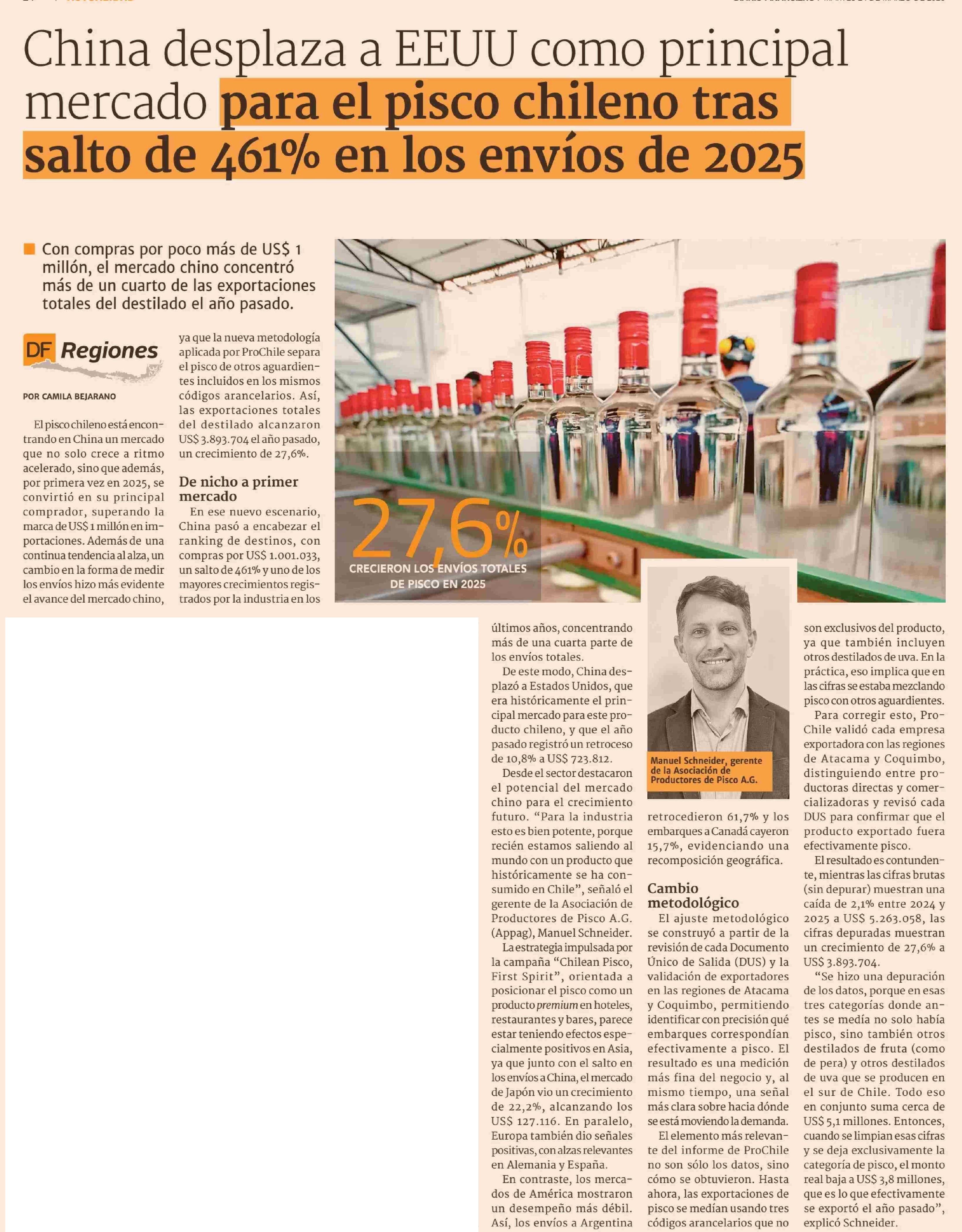 China desplaza a EEUU como principal mercado para el pisco chileno tras salto de 461% EN los envios de 2025