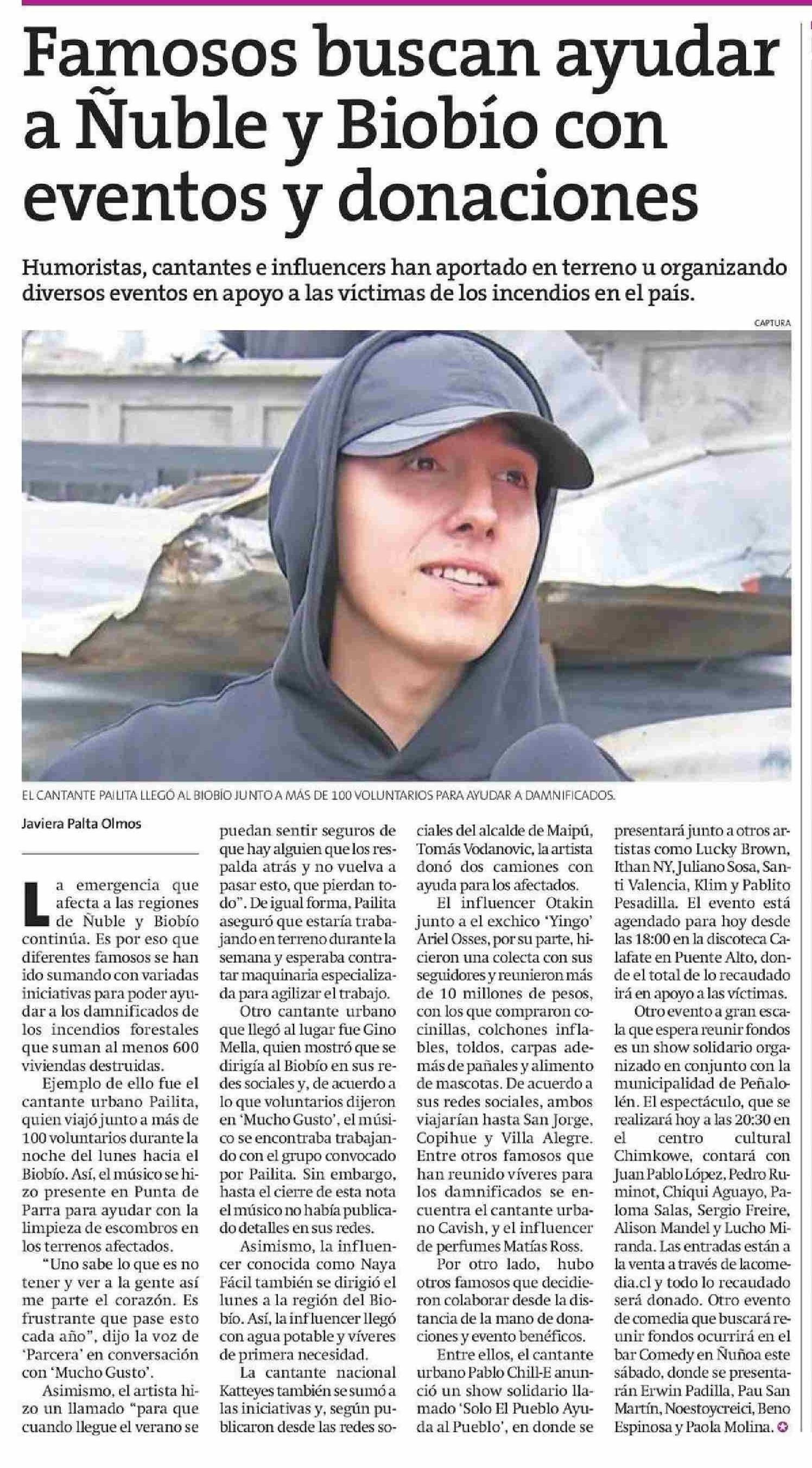 Famosos buscan ayudar a Ñuble y Biobio con eventos y donaciones
