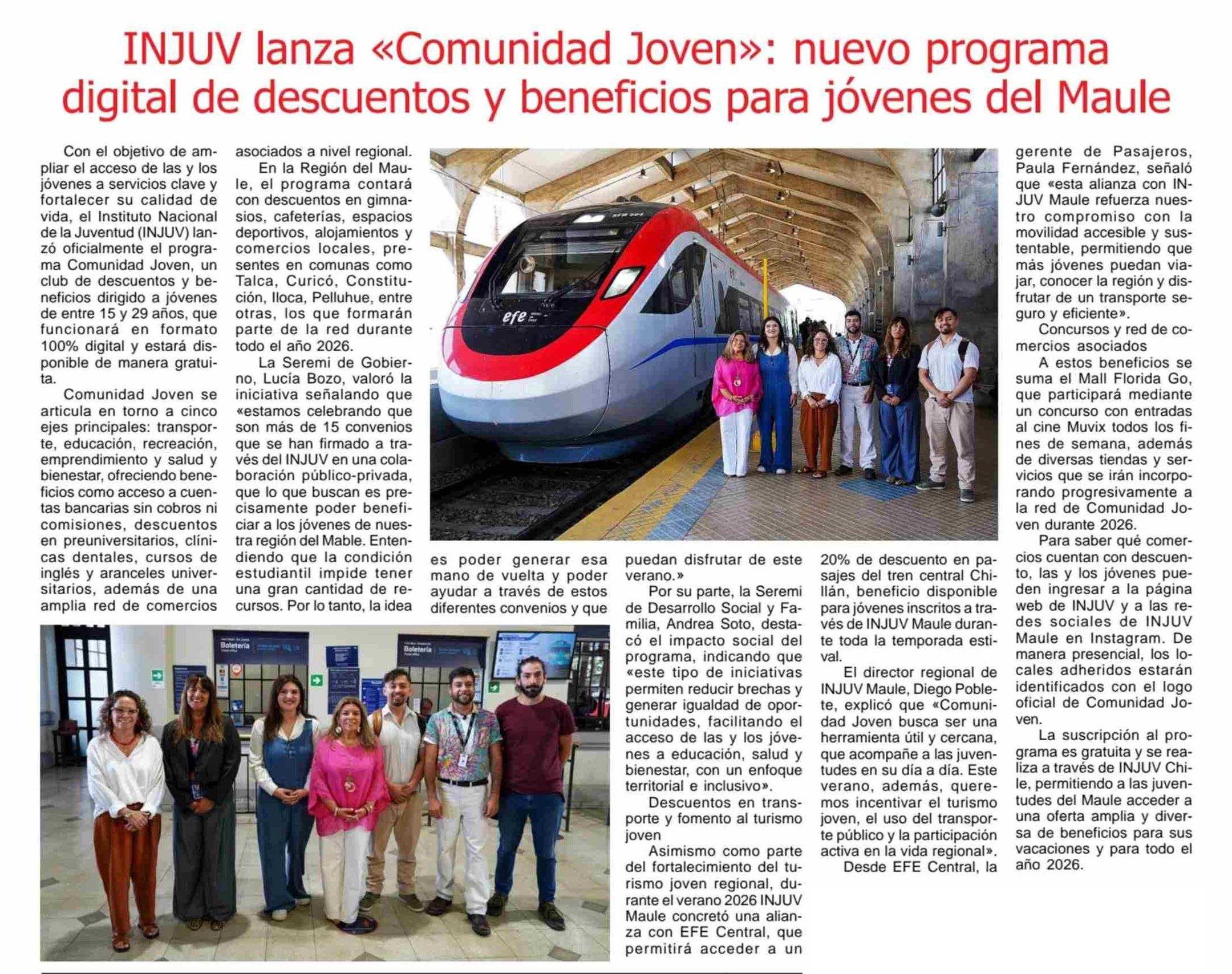 INJUV lanza «Comunidad Joven»: nuevo programa digital de descuentos y beneficios para jóvenes del Maule