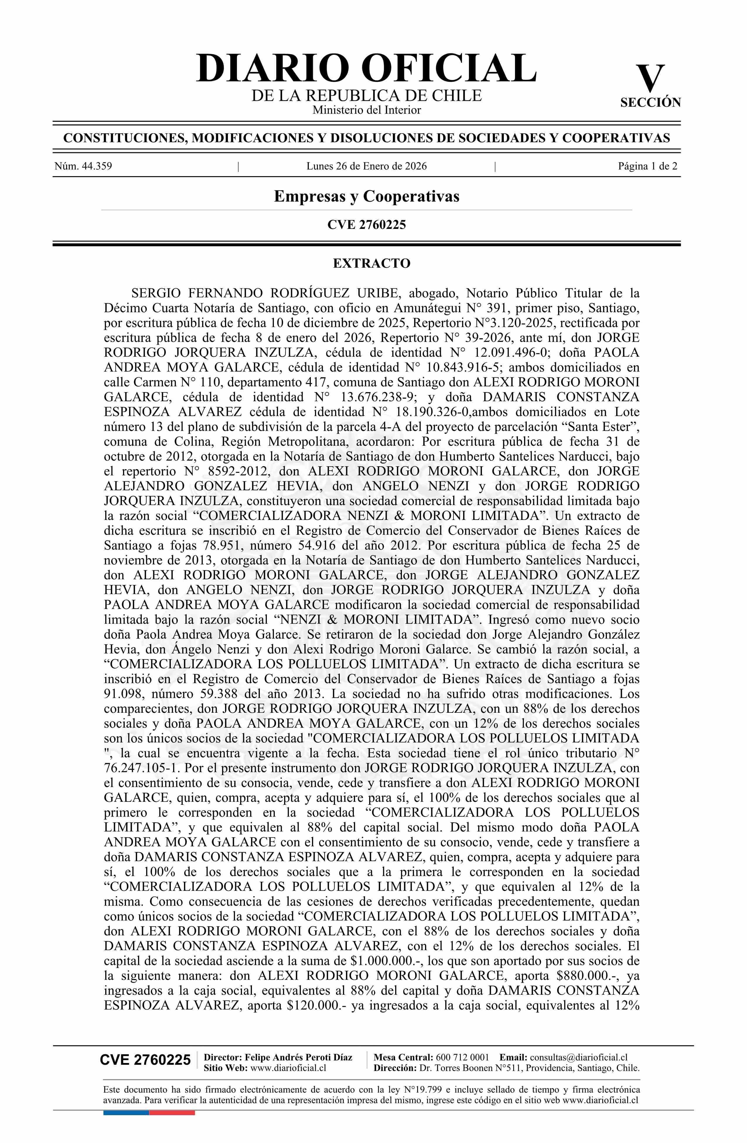 Diario Oficial Edición Electrónica (Diario Oficial de Chile - 5 Empresas Y Cooper)