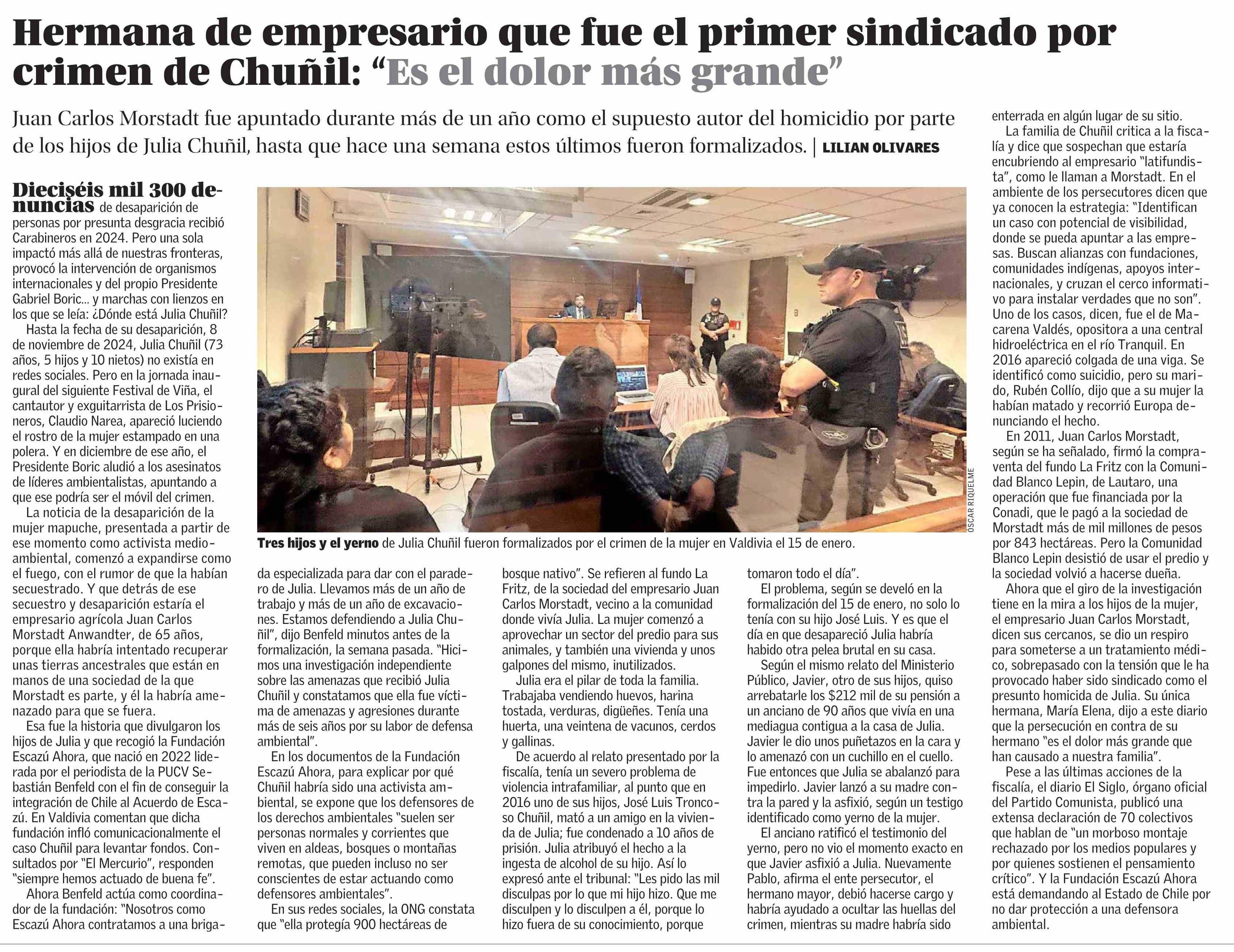 Hermana de empresario que fue el primer sindicado por crimen de Chuñil: “Es el dolor más grande”