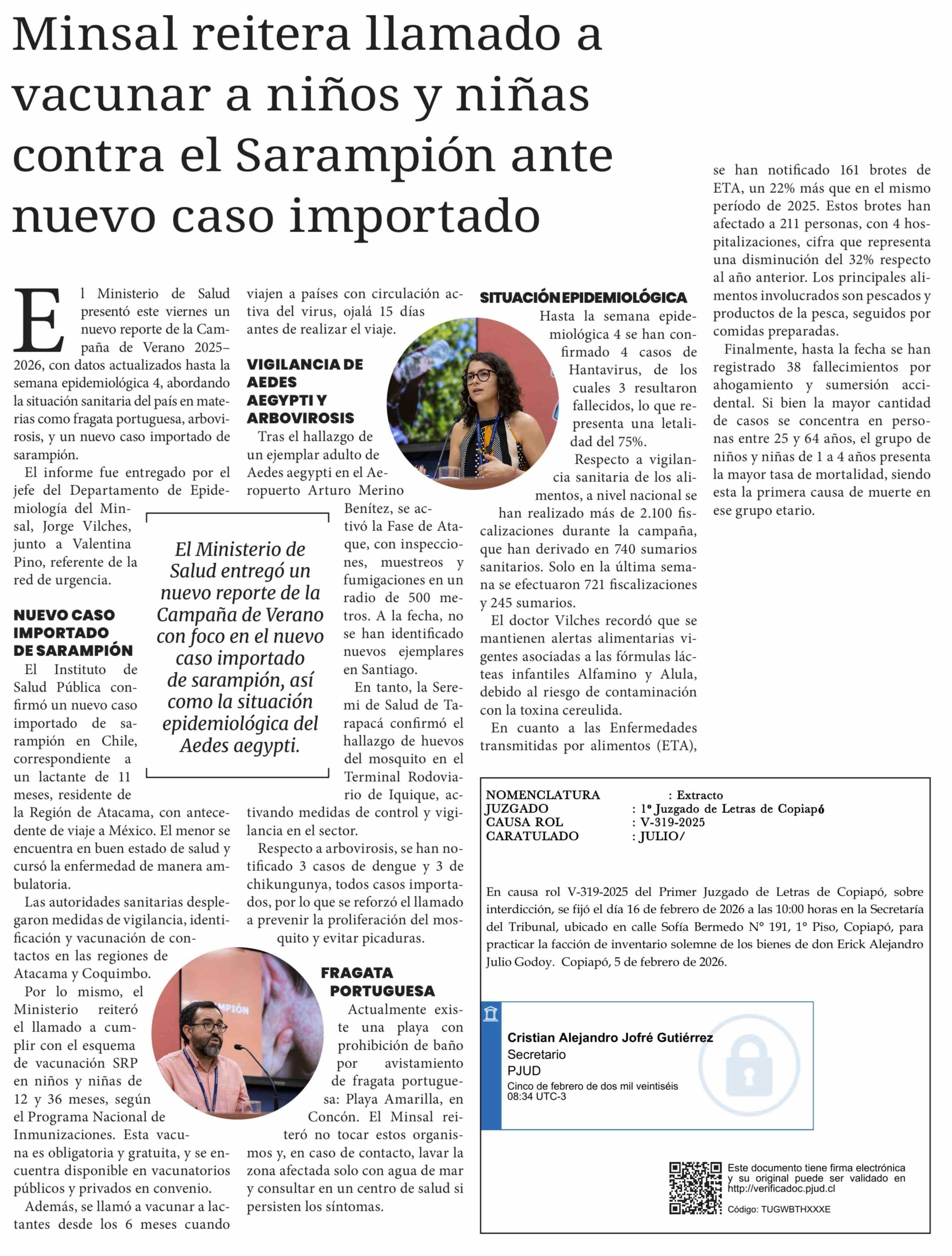 Minsal reitera llamado a vacunar a niños y niñas contra el Sarampión ante nuevo caso importado