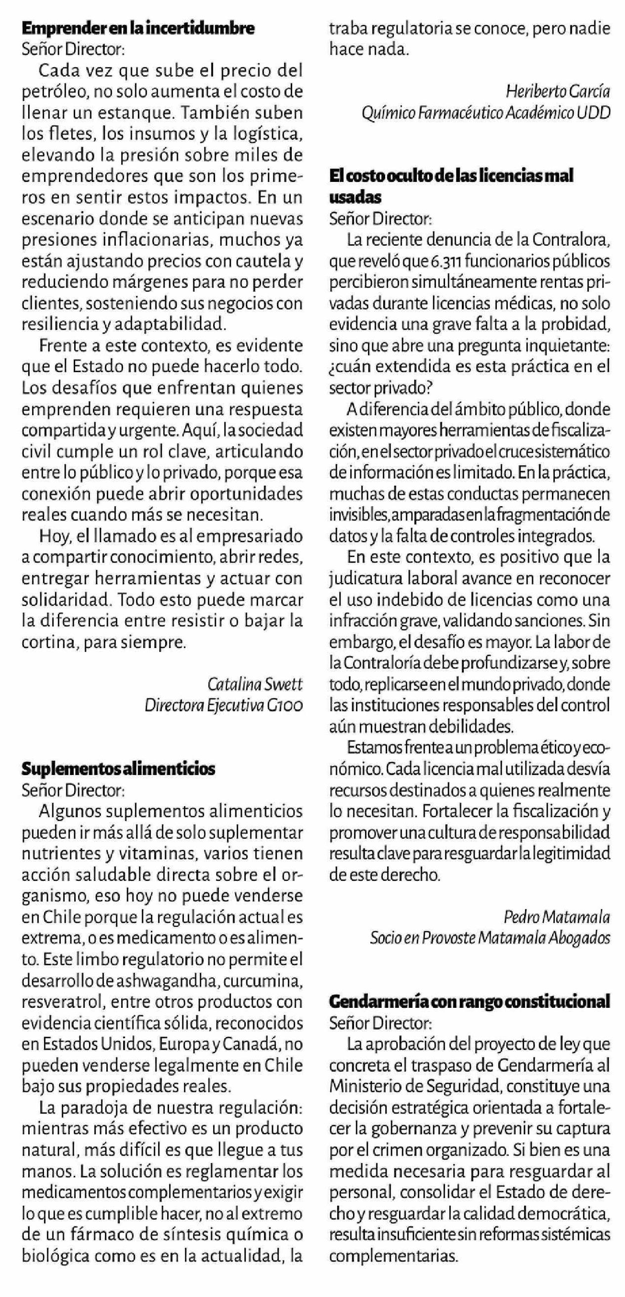 Cartas: Suplementos alimenticios