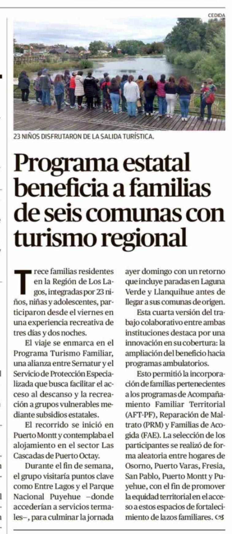 Programa estatal beneficia a familias de seis comunas con turismo regional