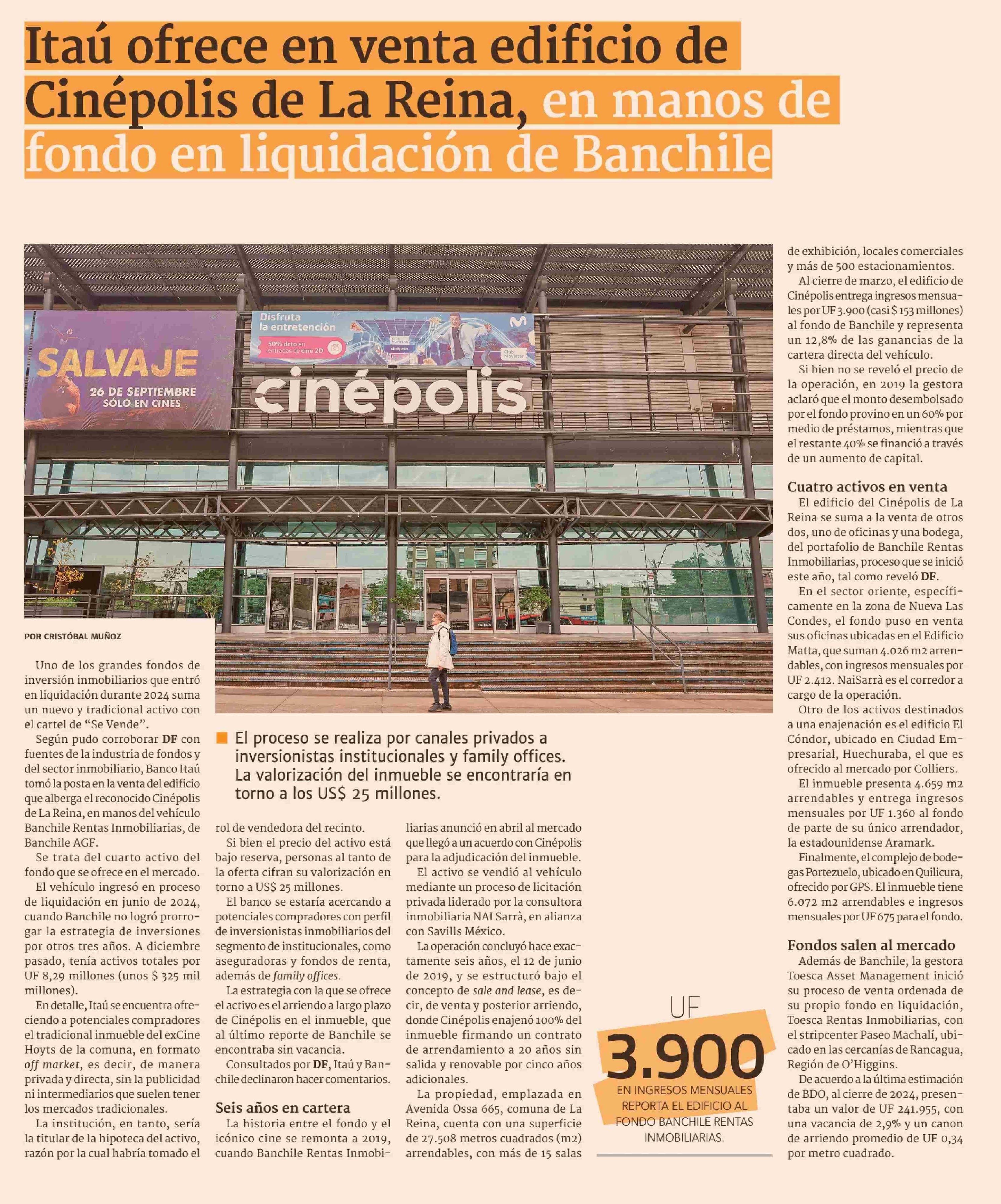 Itaú ofrece en venta edificio de Cinépolis de la Reina, en manos de fondo en liquidación de Banchile