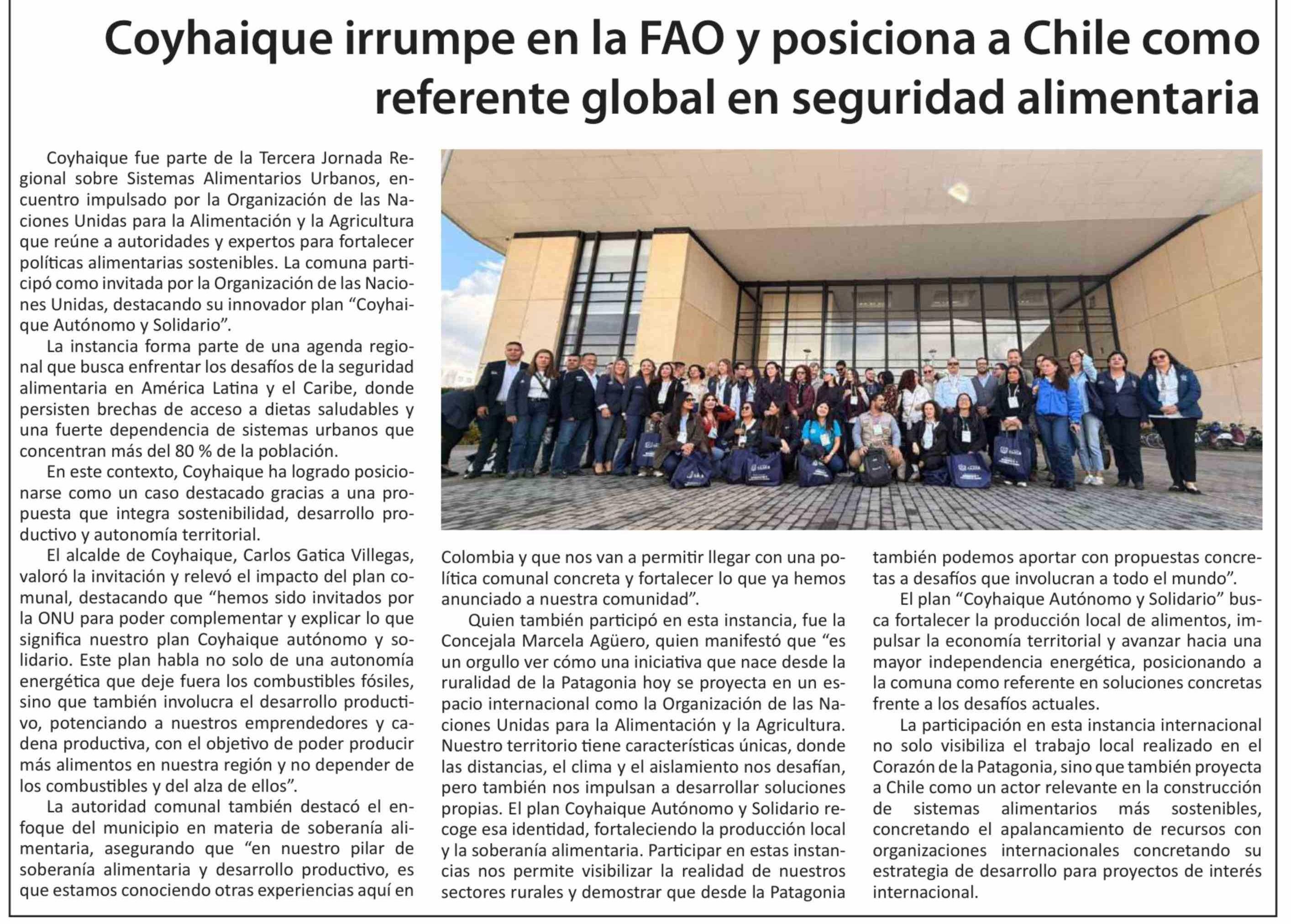 Coyhaique irrumpe en la FAO y posiciona a Chile como referente global en seguridad alimentaria