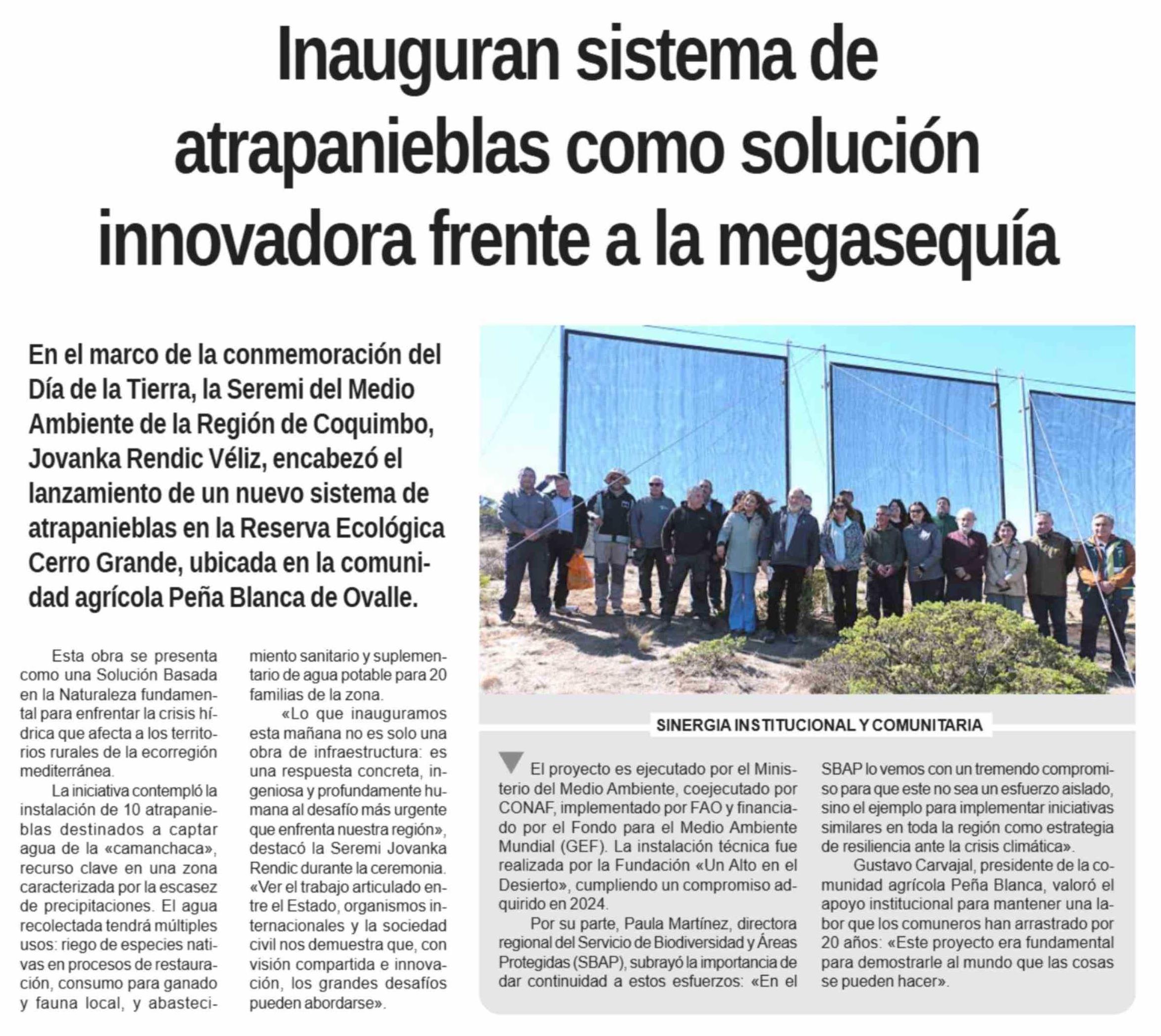 Inauguran sistema de atrapanieblas como solución innovadora frente a la megasequía
