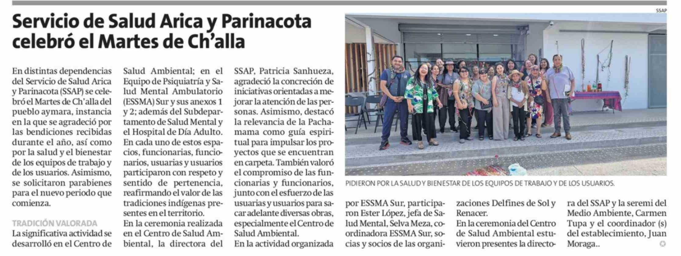 Servicio de Salud Arica y Parinacota celebró el Martes de Ch'alla