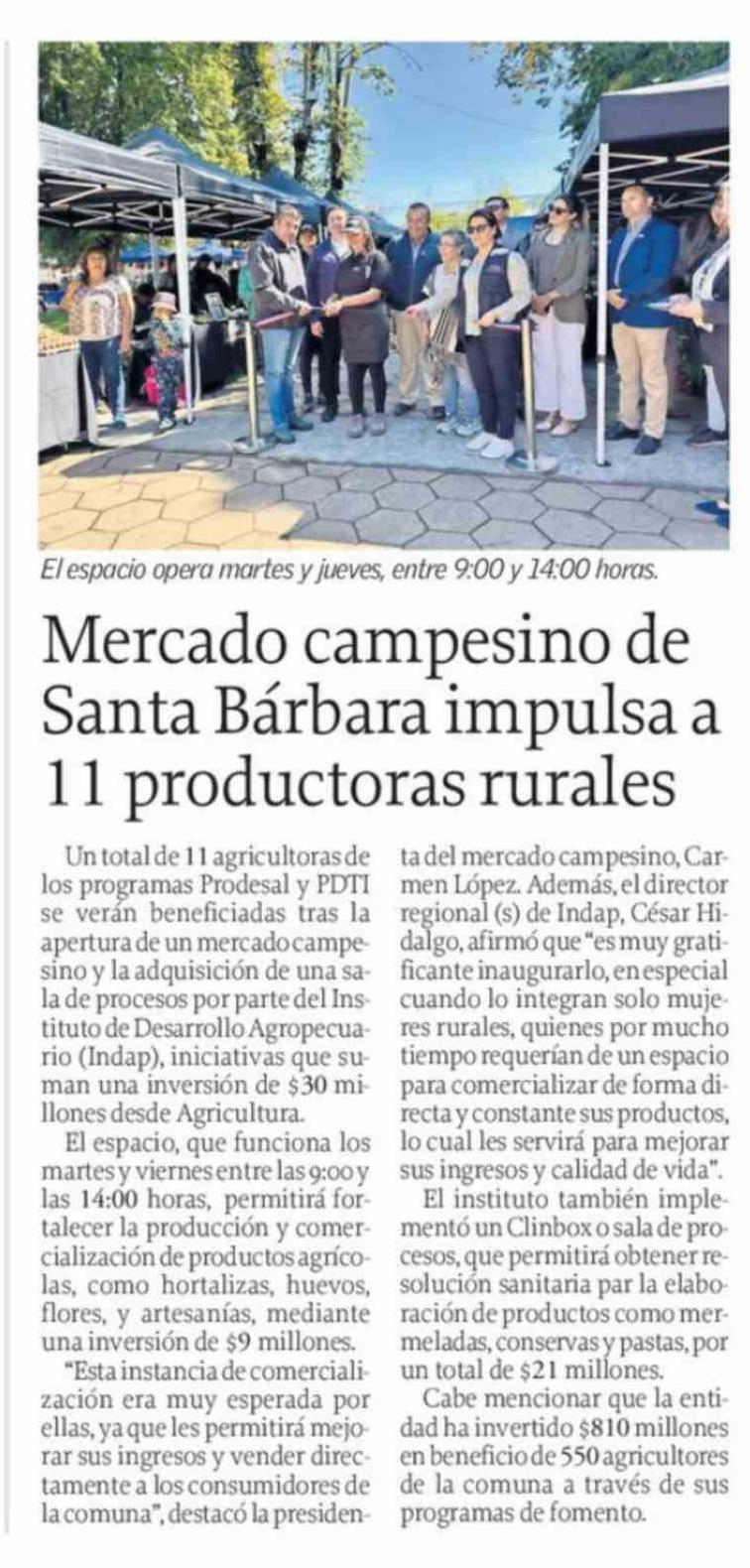 Mercado campesino de Santa Bárbara impulsa a 11 productoras rurales
