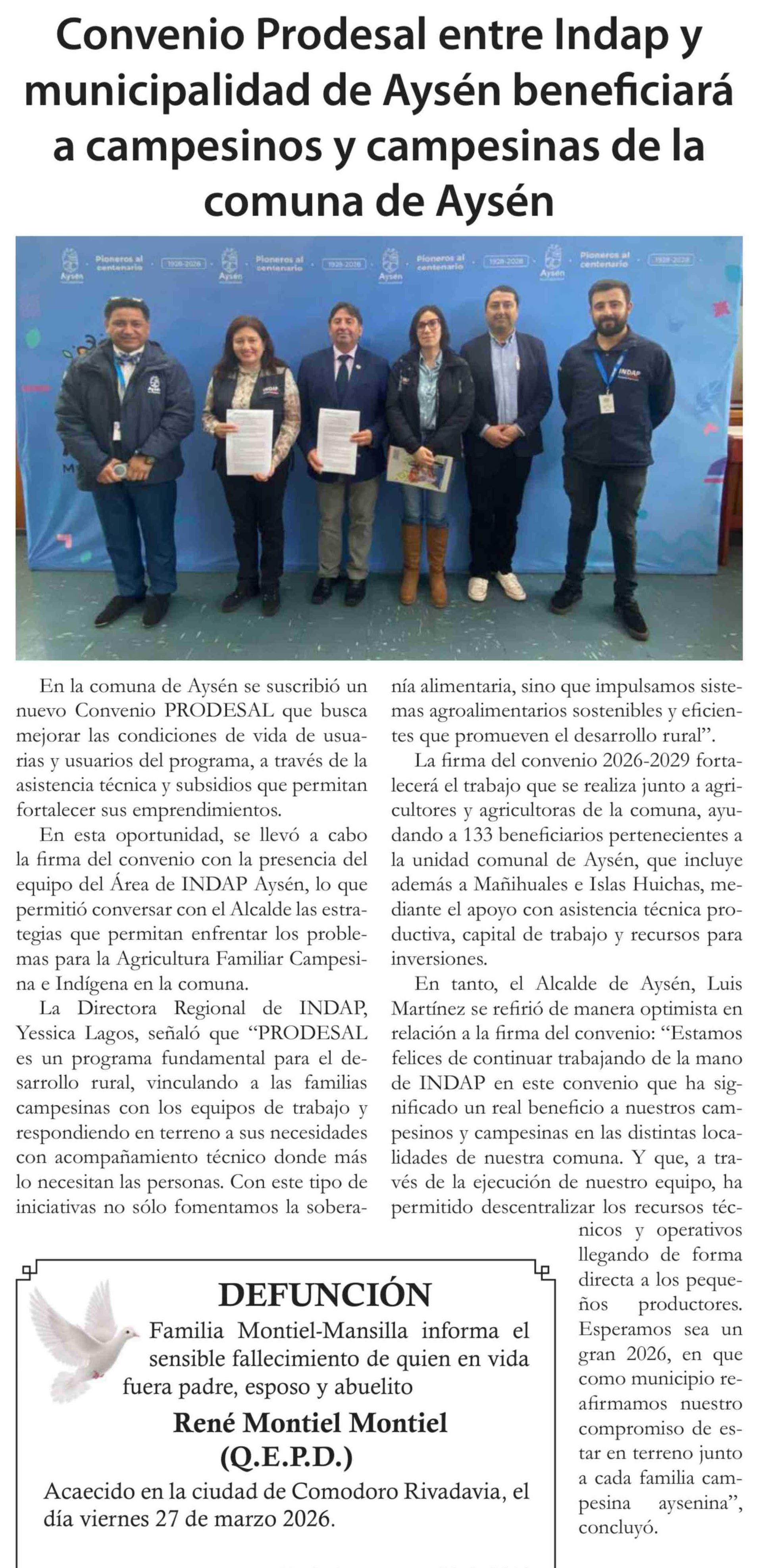 Convenio Prodesal entre Indap y municipalidad de Aysén beneficiará a campesinos y campesinas de la comuna de Aysén