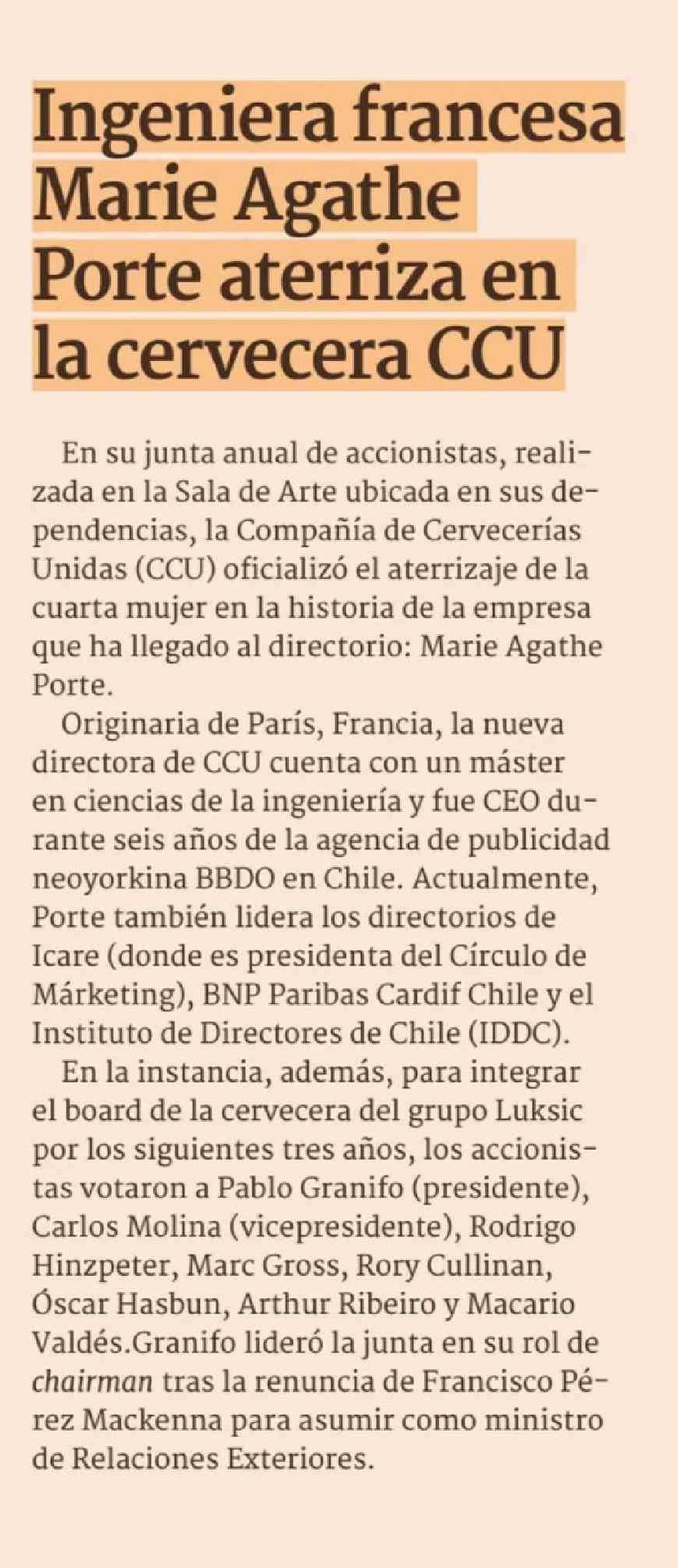 Ingeniera francesa Marie Agathe Porte aterriza en la cervecera CCU