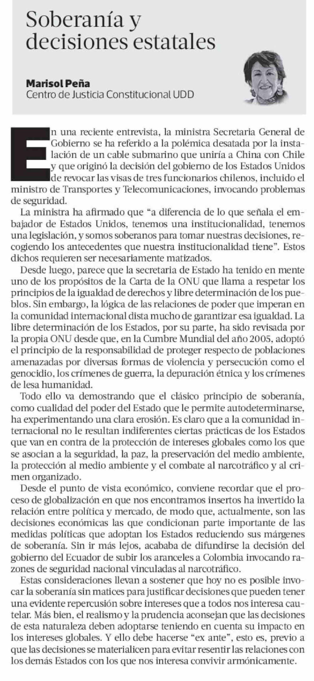 Título: Columnas de Opinión: Soberanía y decisiones estatales