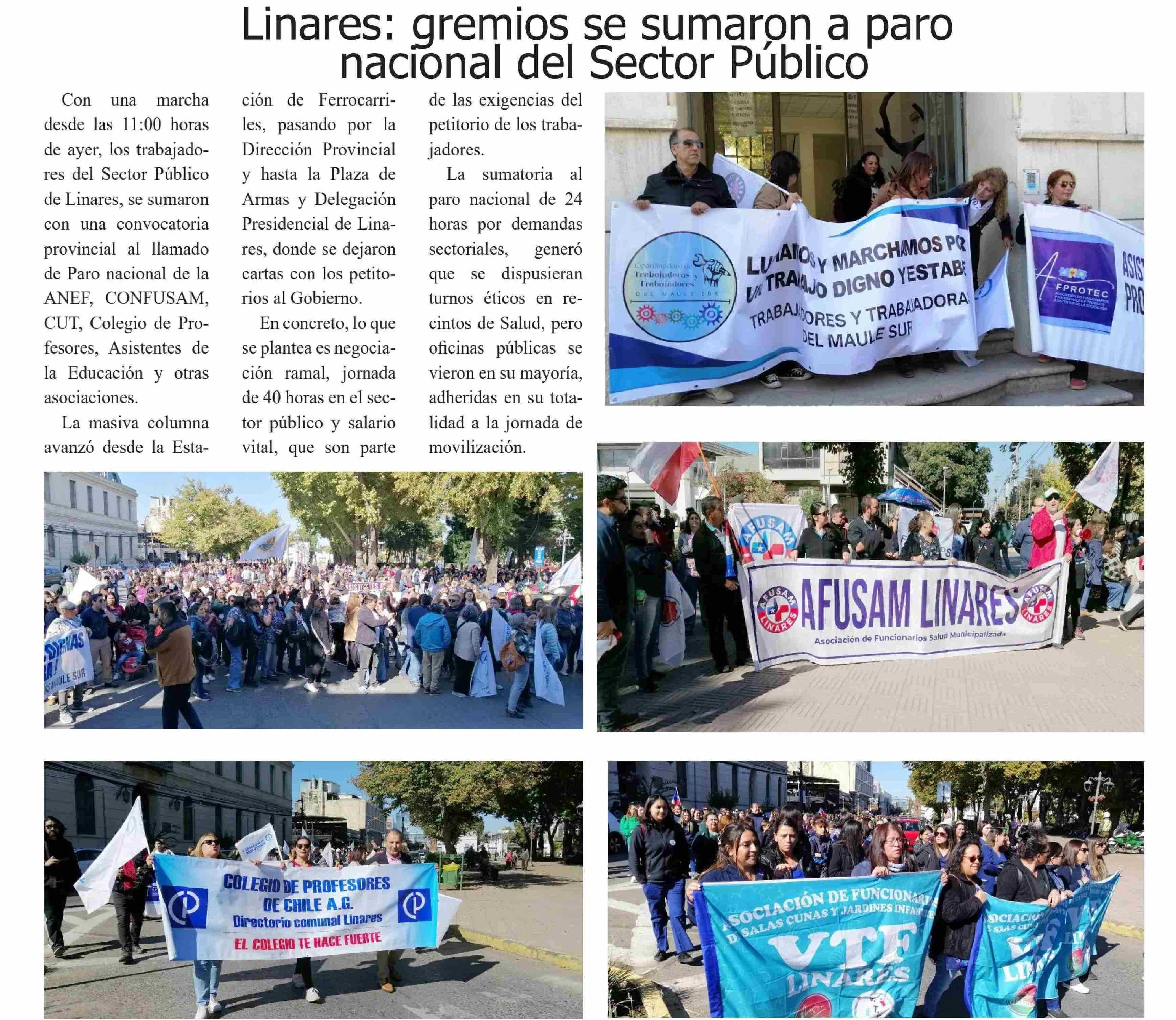 Linares: gremios se sumaron a paro nacional del Sector Público