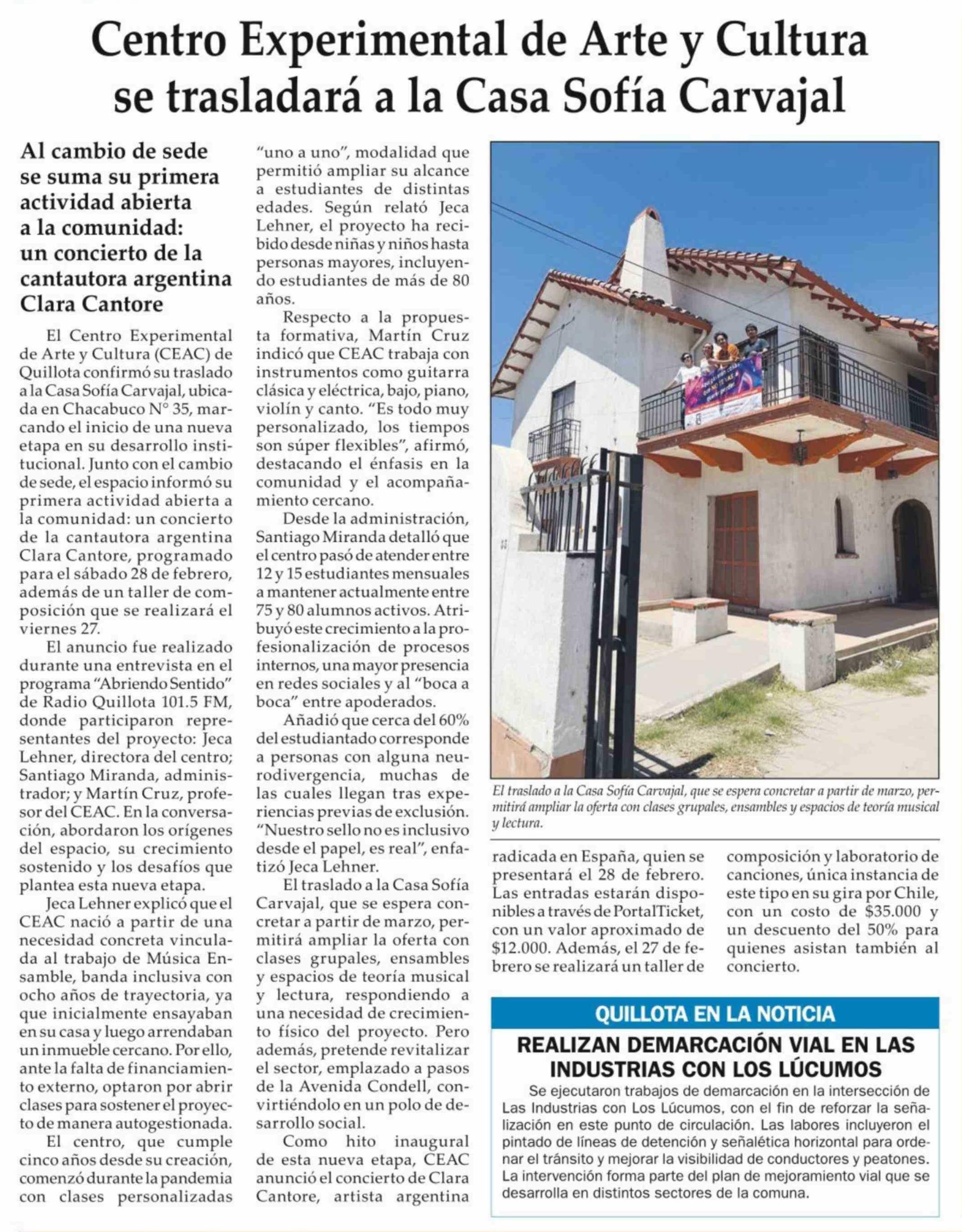Centro Experimental de Arte y Cultura se trasladará a la Casa Sofía Carvajal