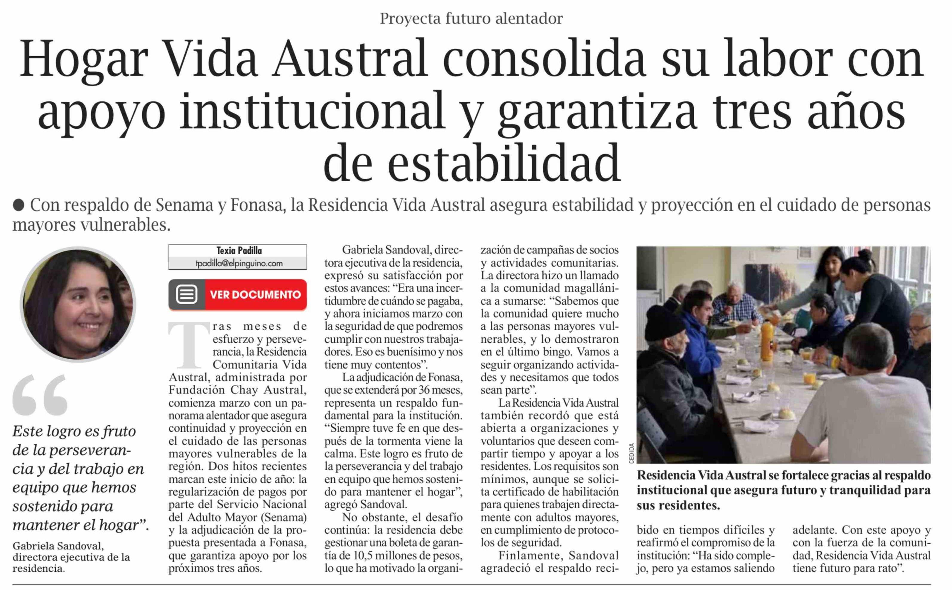Hogar Vida Austral consolida su labor con apoyo institucional y garantiza tres años de estabilidad