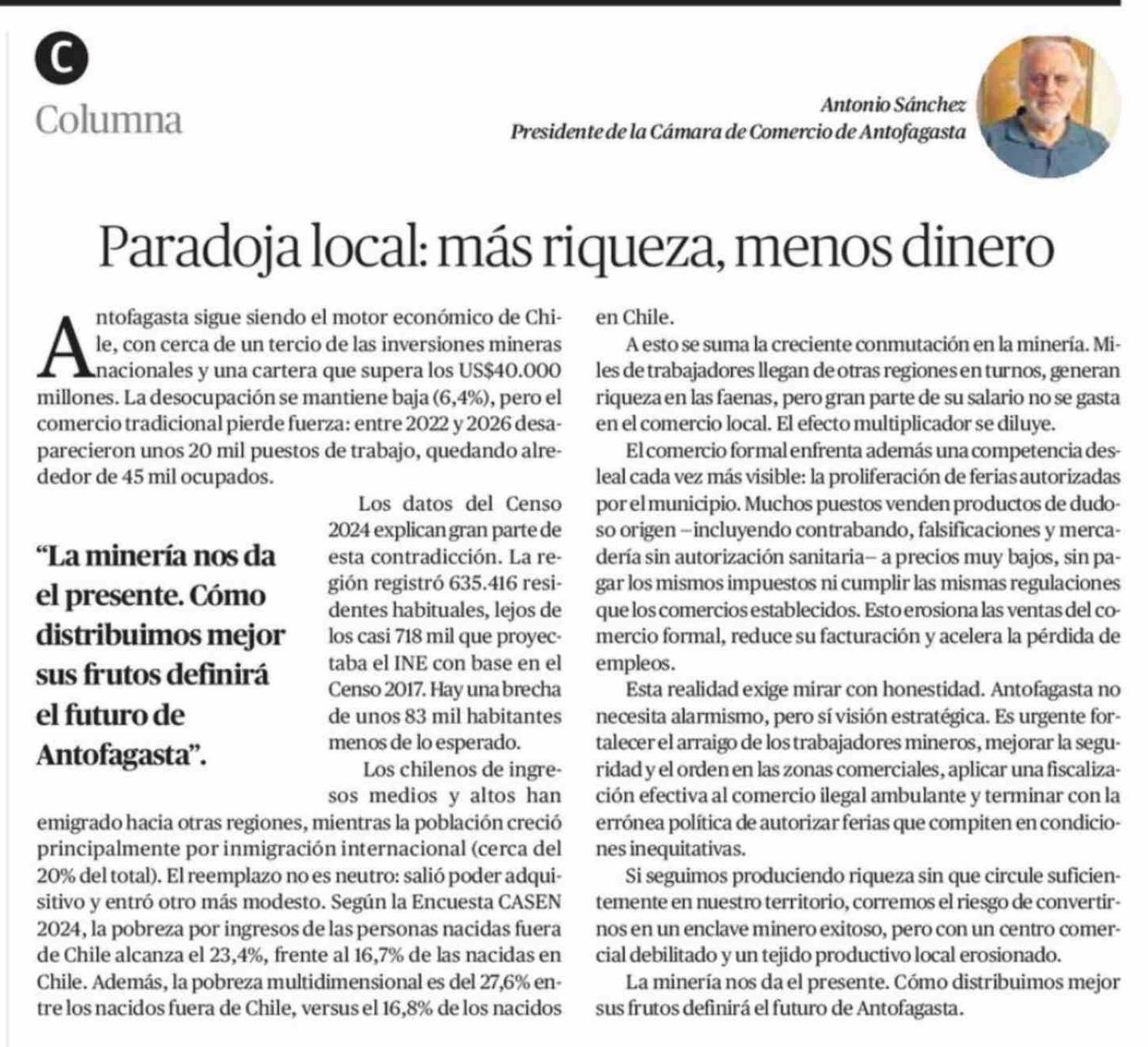 Columnas de Opinión: Paradoja local: más riqueza, menos dinero