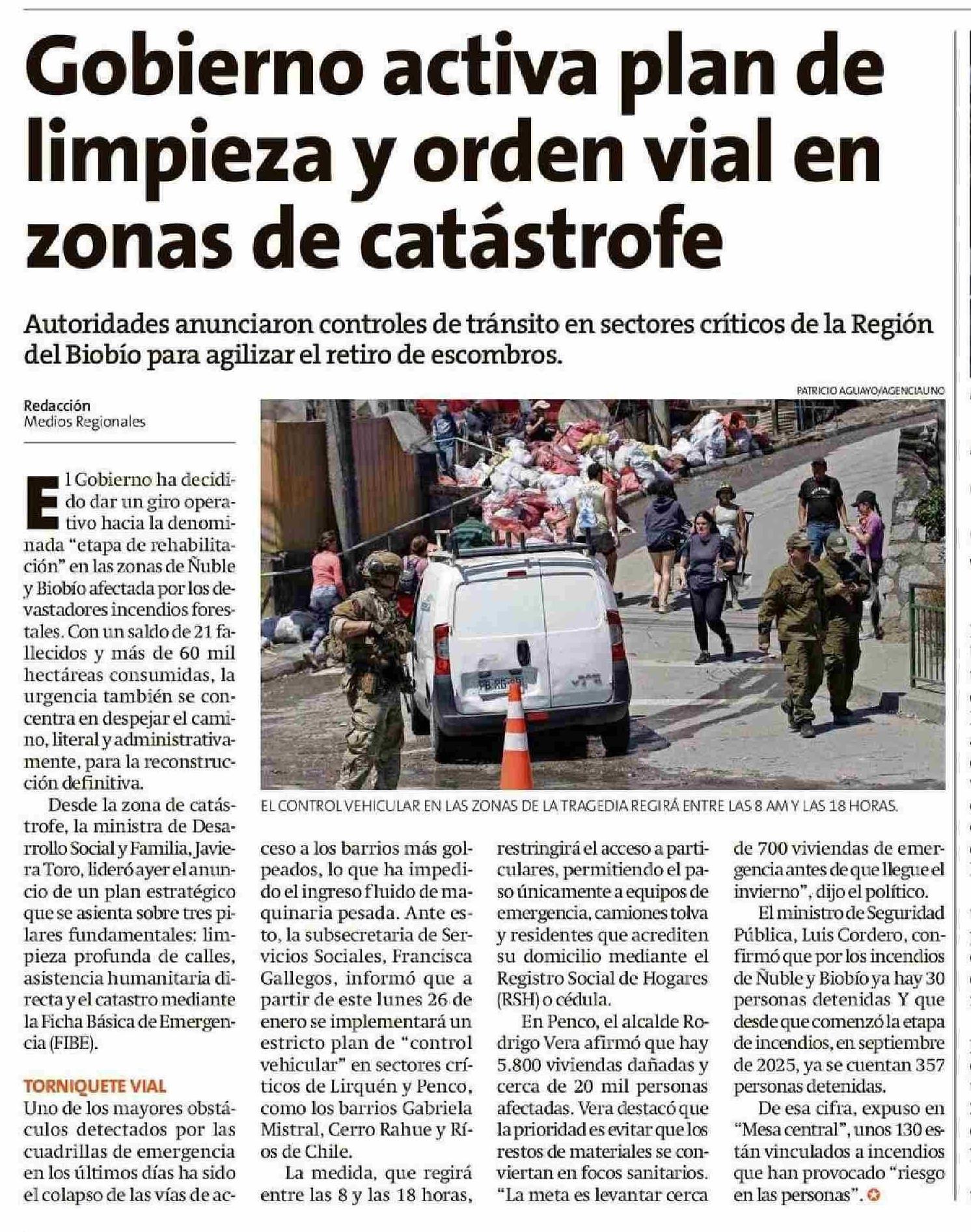 Gobierno activa plan de limpieza y orden vial en zonas de catástrofe