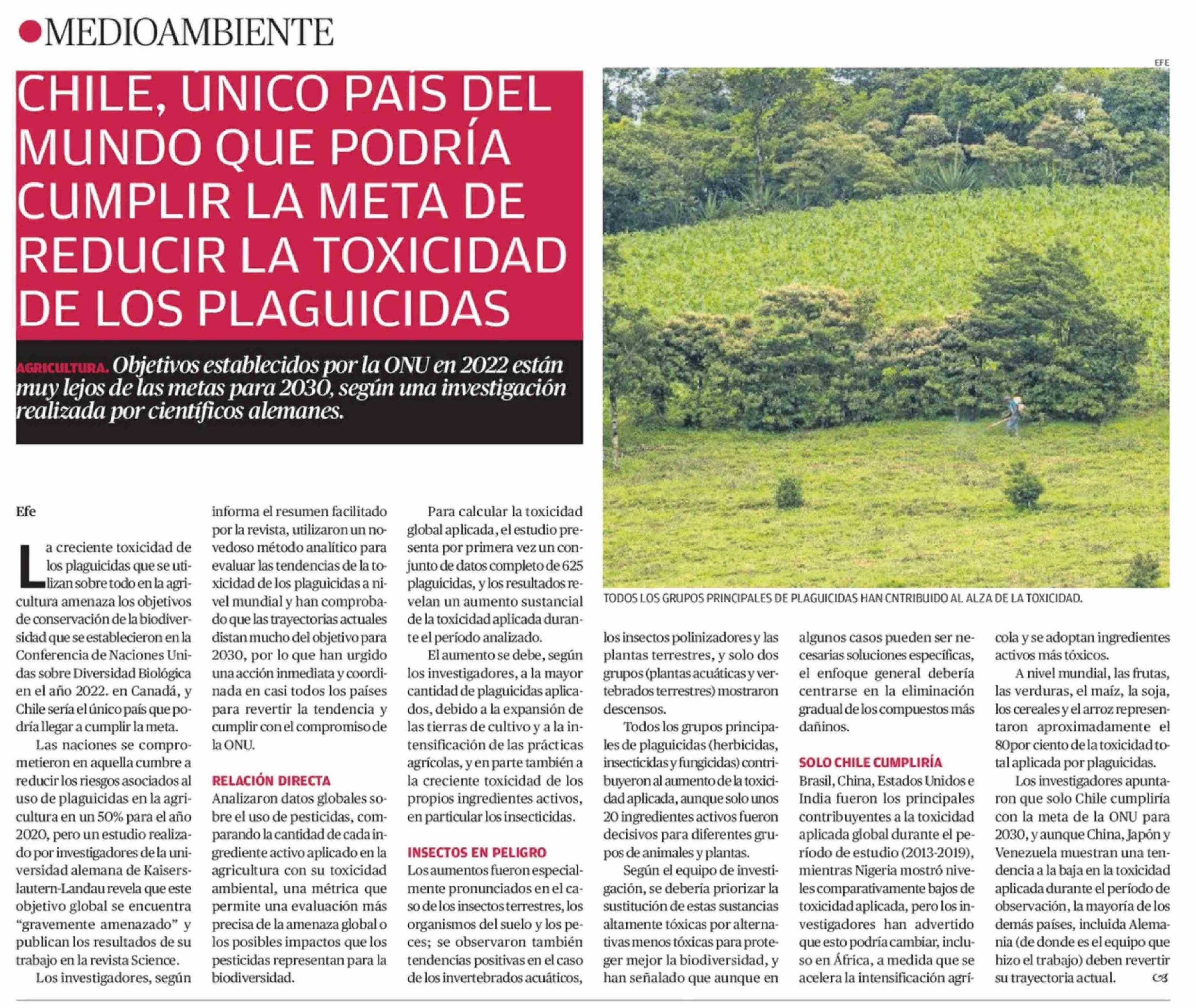 CHILE, UNICO PAIS DEL MUNDO QUE PODRÍA CUMPLIR LA META DE REDUCIR LA TOXICIDAD DE LOS PLAGUICIDAS