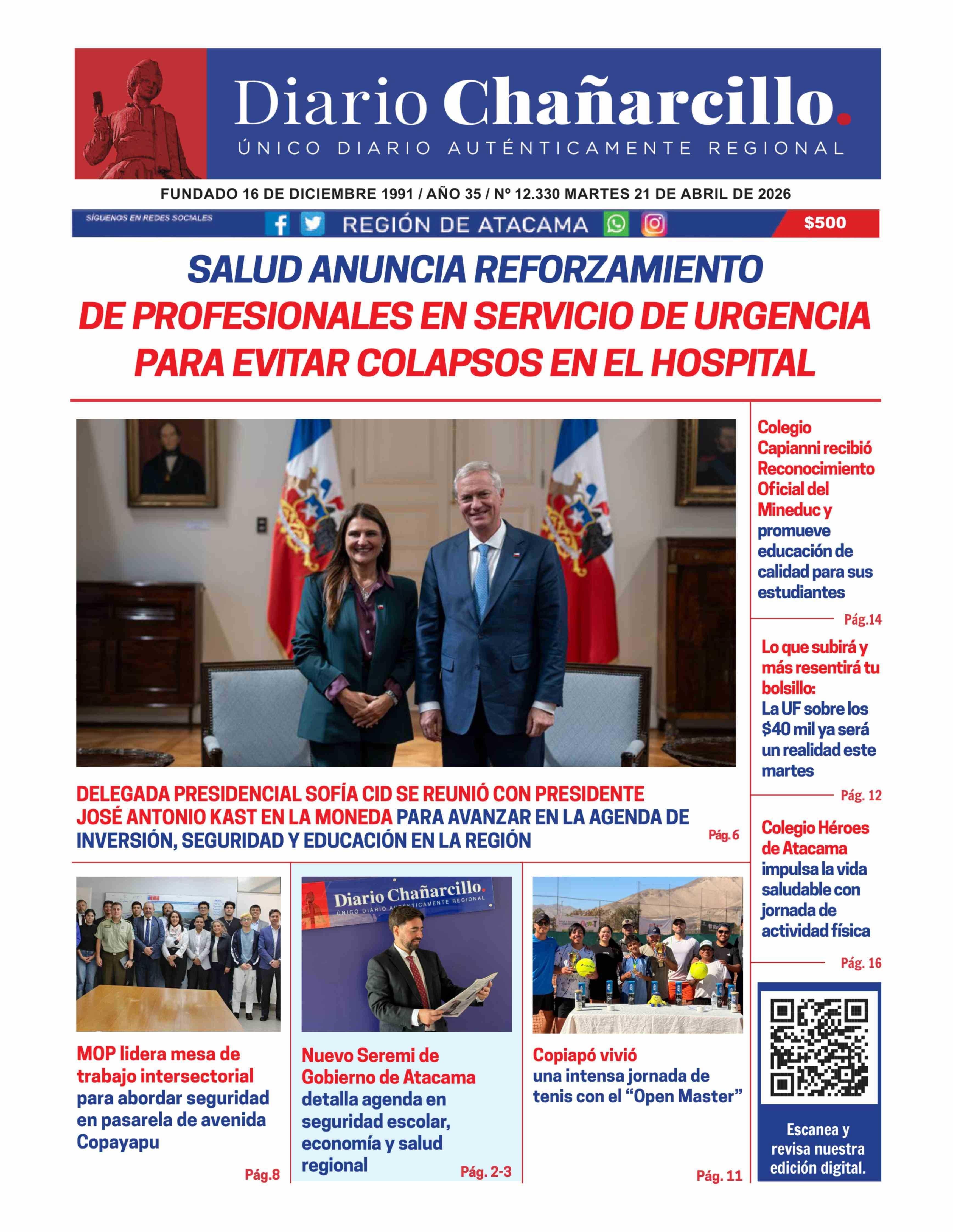 PORTADA DIARIO CHAÑARCILLO CHILE
