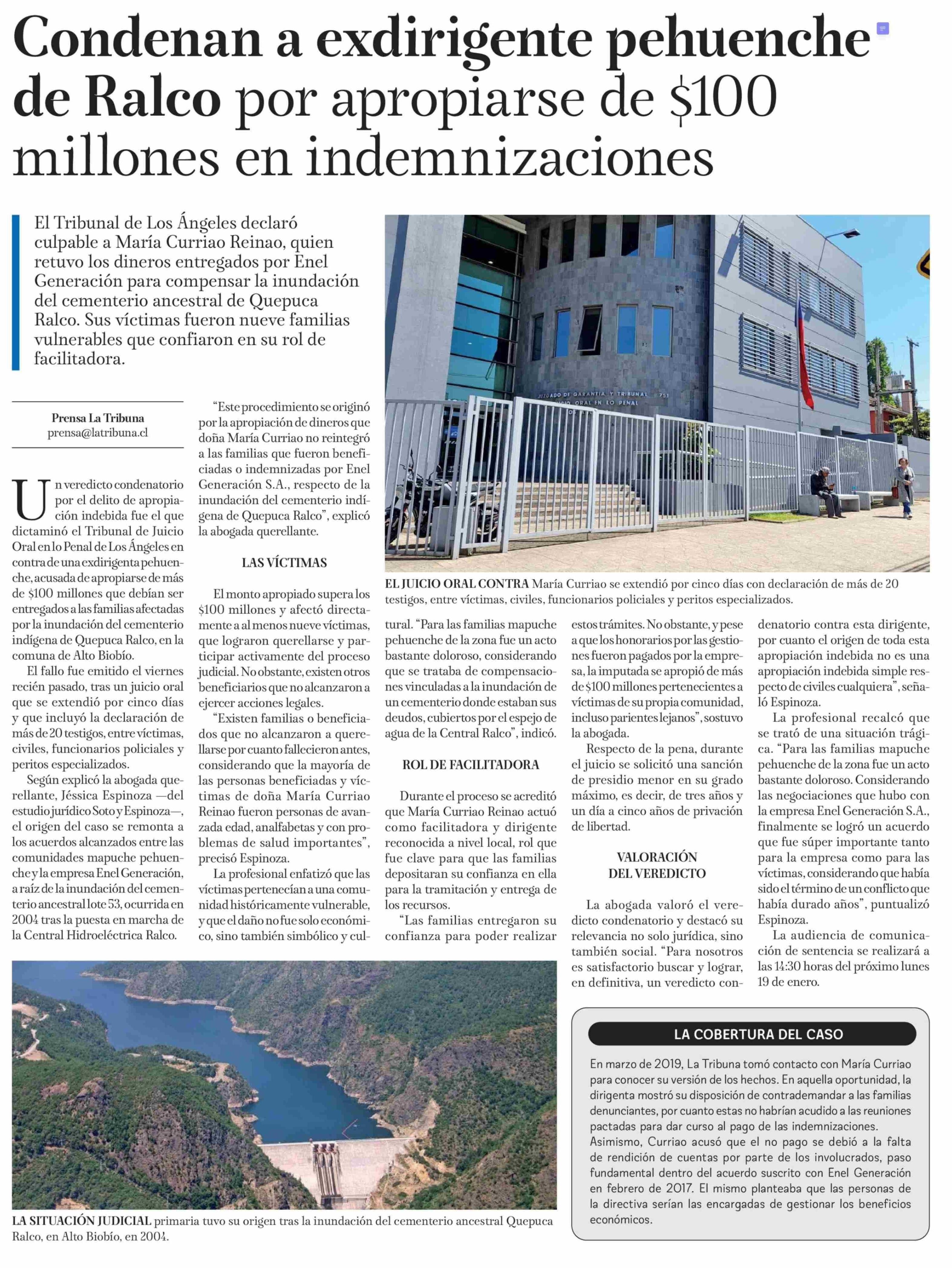 Condenan a exdirigente pehuenche de Ralco por apropiarse de $100 millones en indemnizaciones