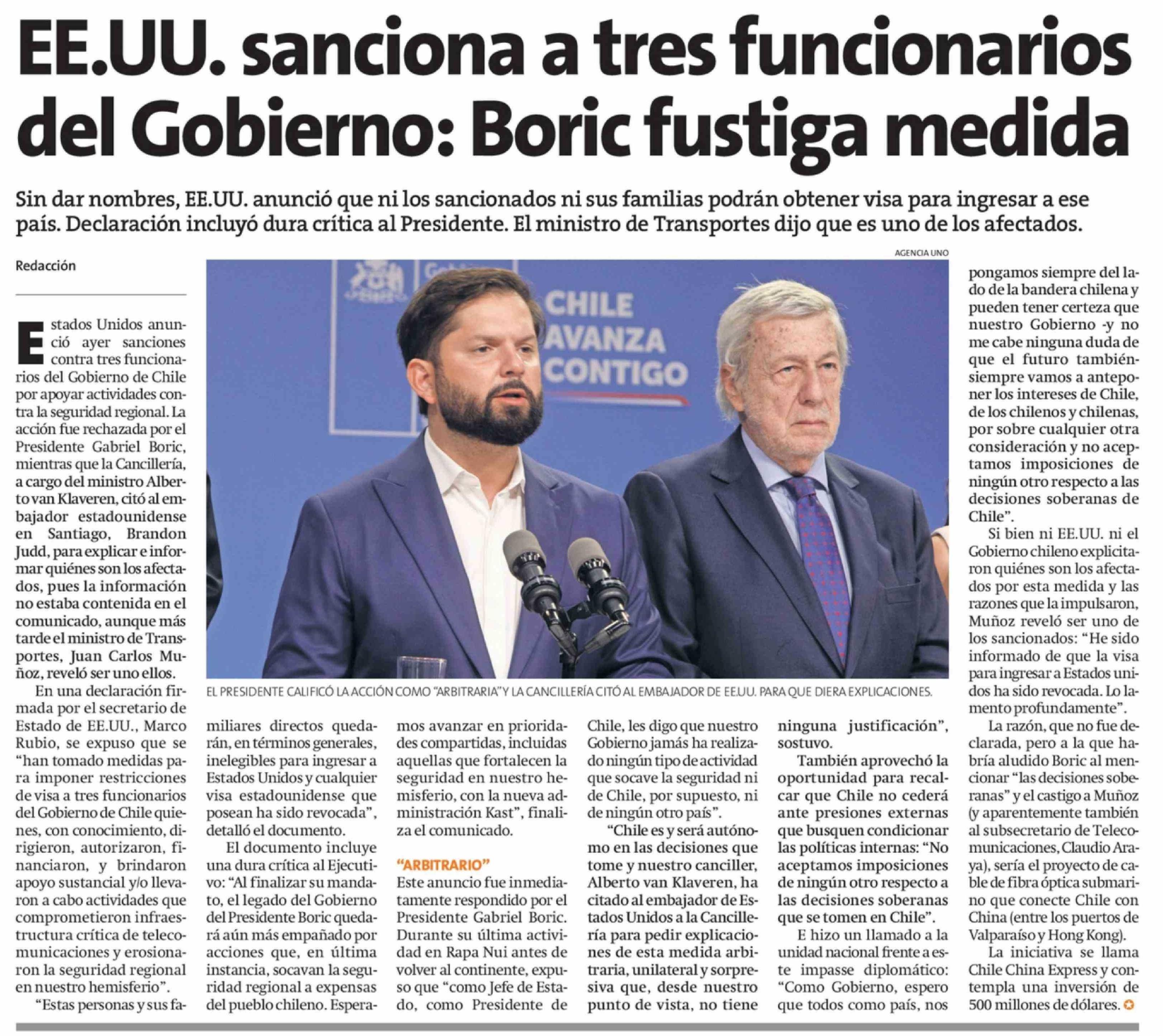 EE.UU. sanciona a tres funcionarios del Gobierno: Boric fustiga medida