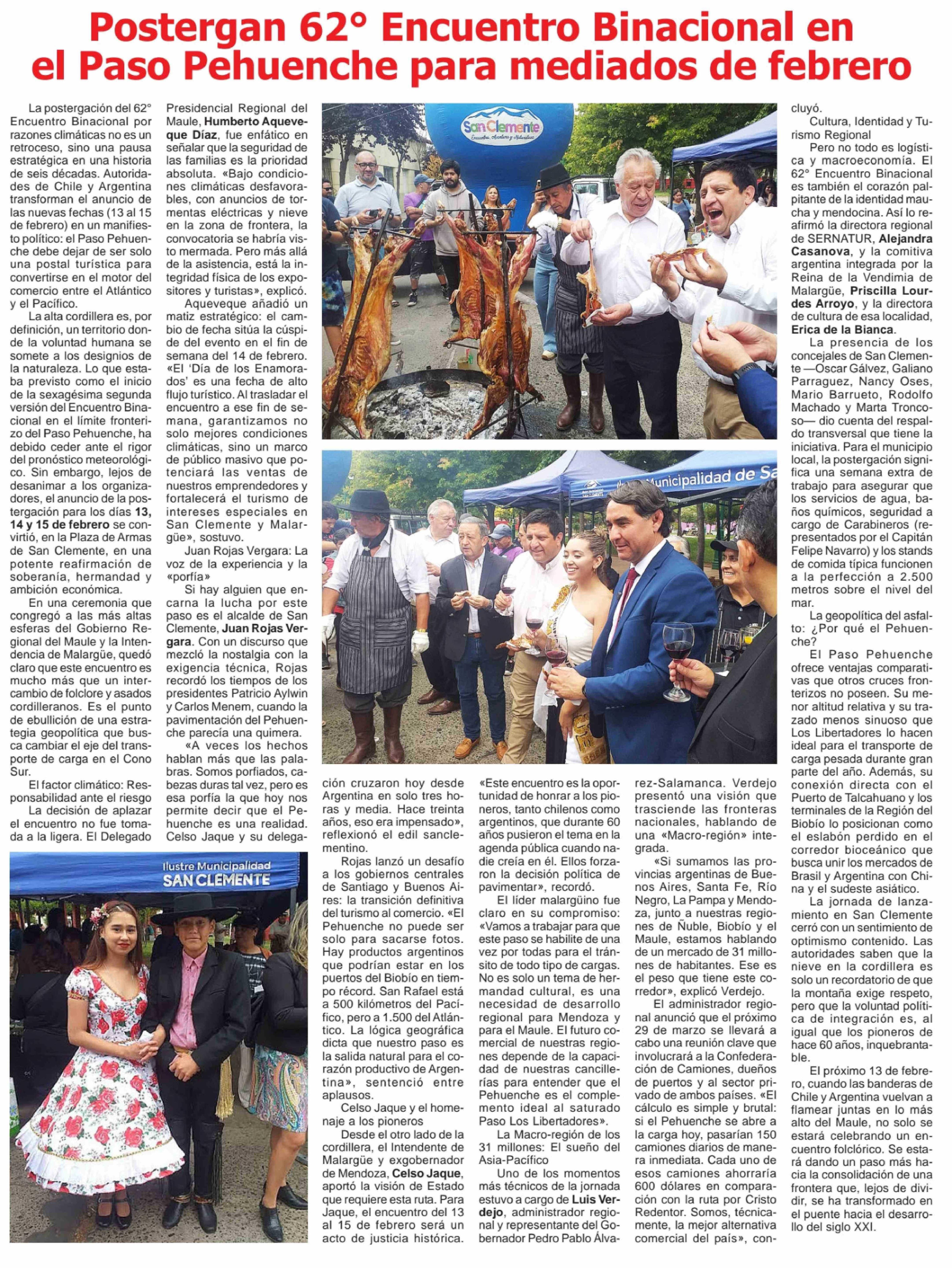 Postergan 62° Encuentro Binacional en el Paso Pehuenche para mediados de febrero