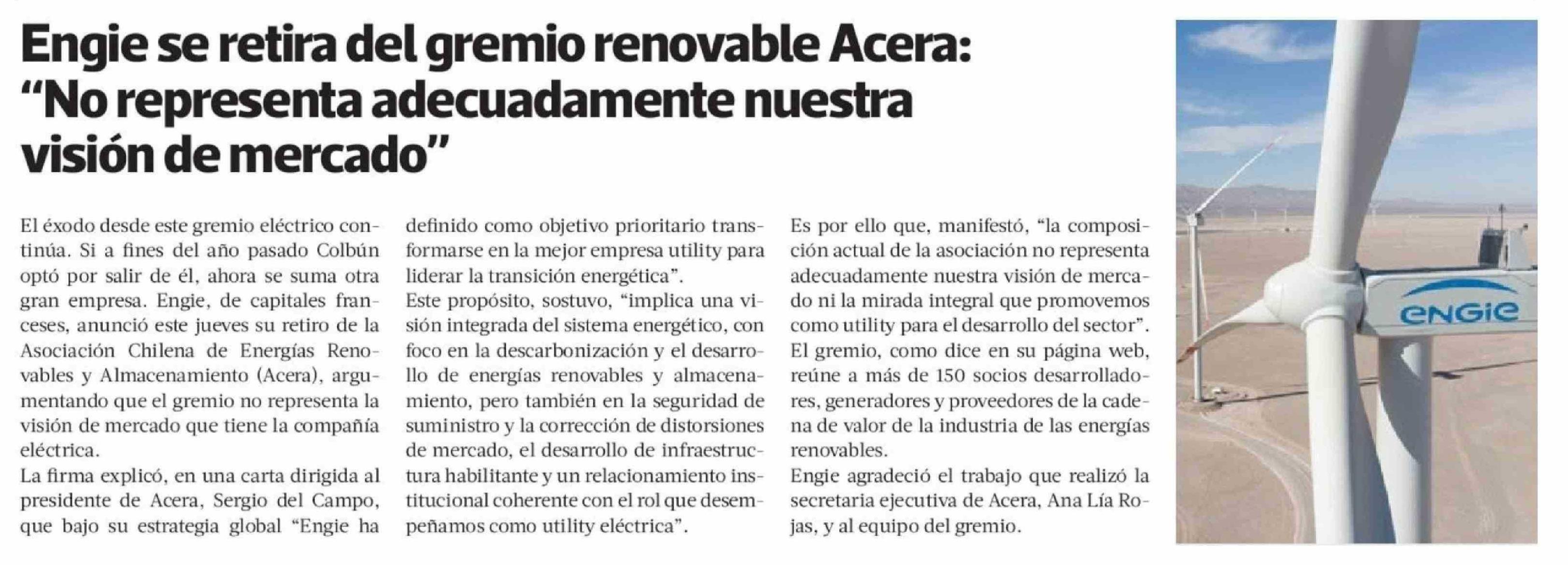 Engie se retira del gremio renovable Acera: "No representa adecuadamente nuestra visión de mercado"