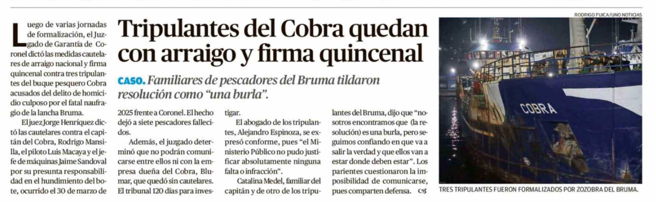 Tripulantes del Cobra quedan con arraigo y firma quincenal