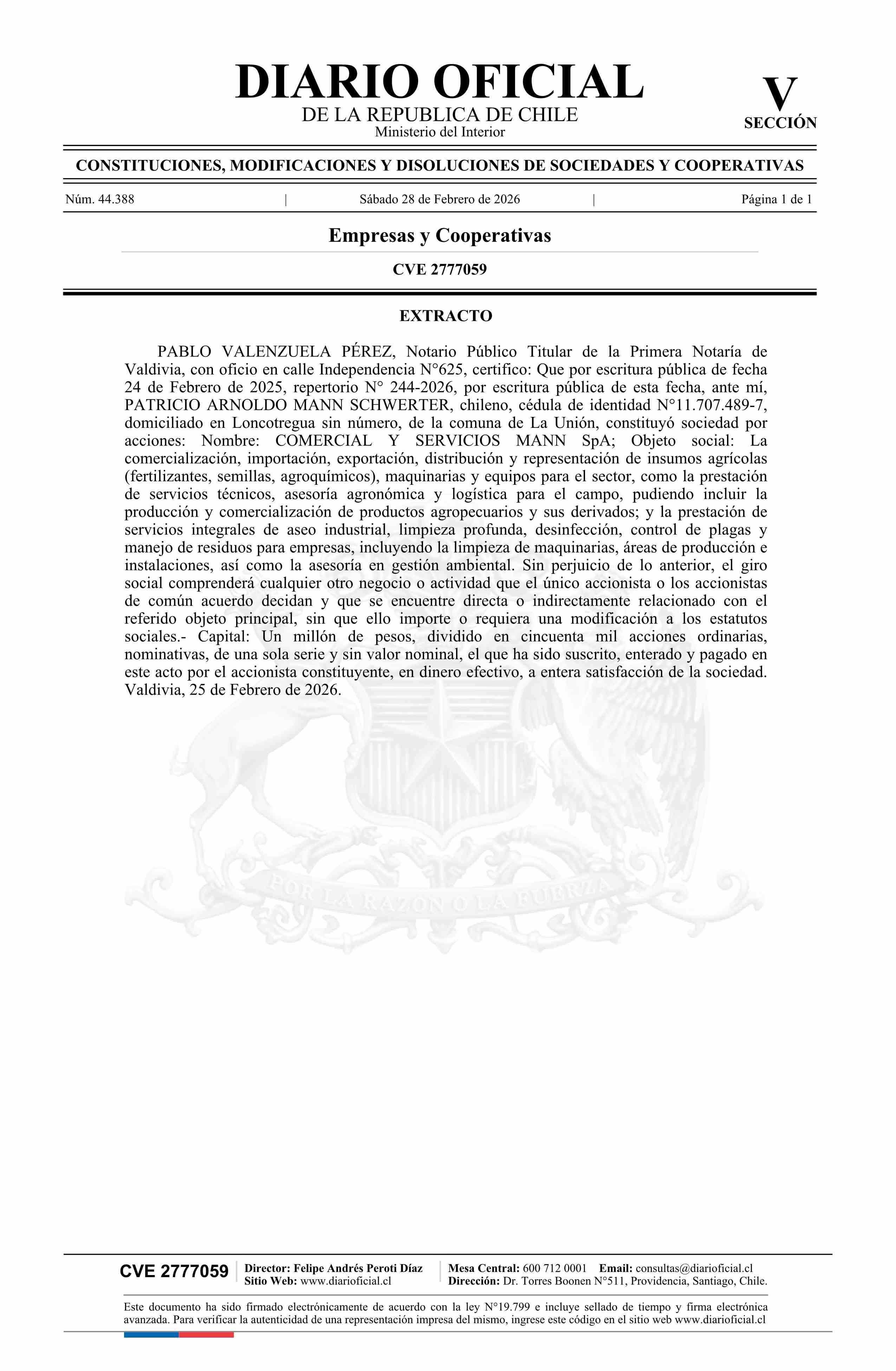 COMERCIAL Y SERVICIOS MANN SpA