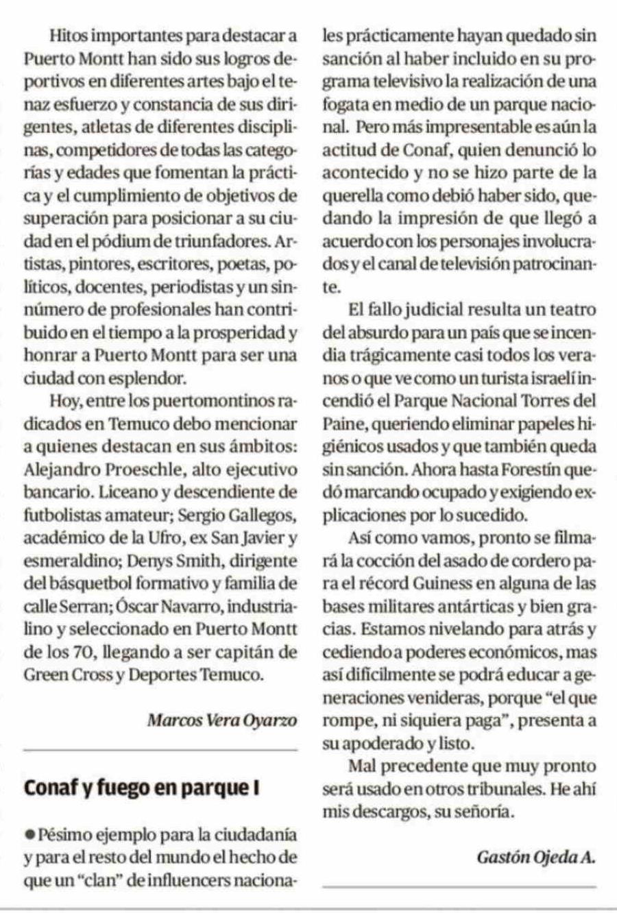 Cartas: Conaf y fuego en parque I