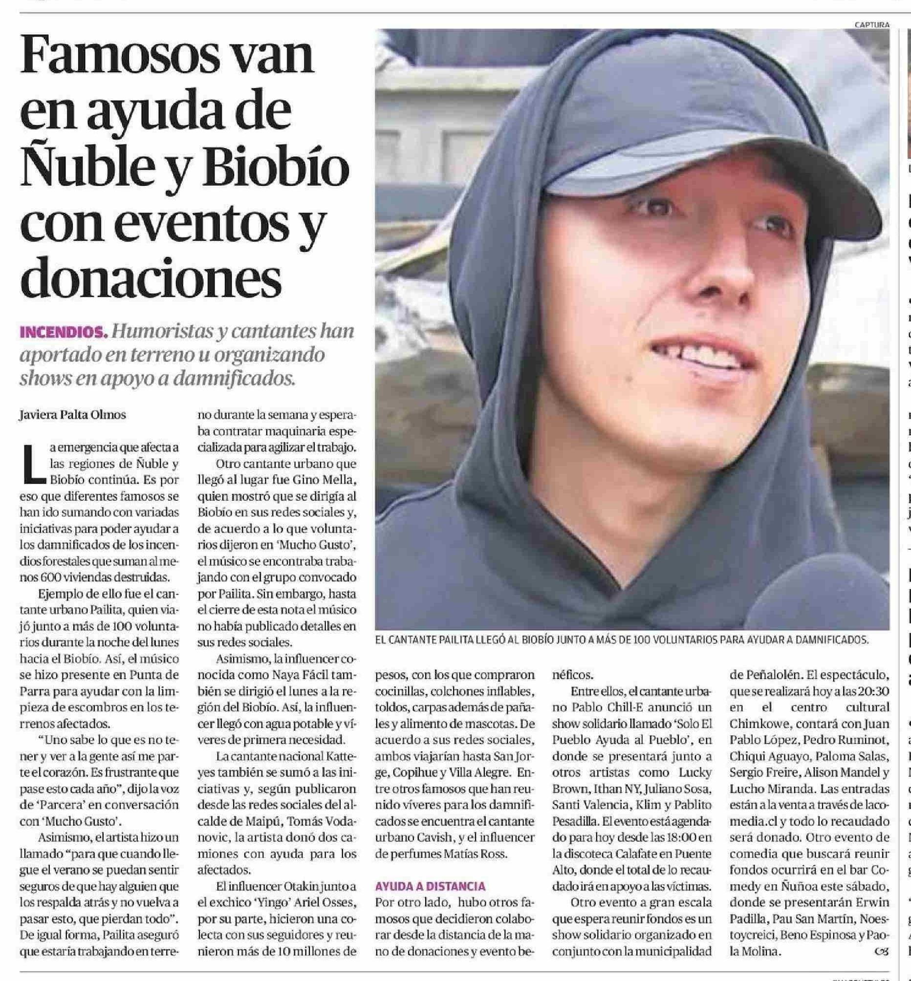 Famosos van en ayuda de Ñuble y Biobio con eventos y donaciones