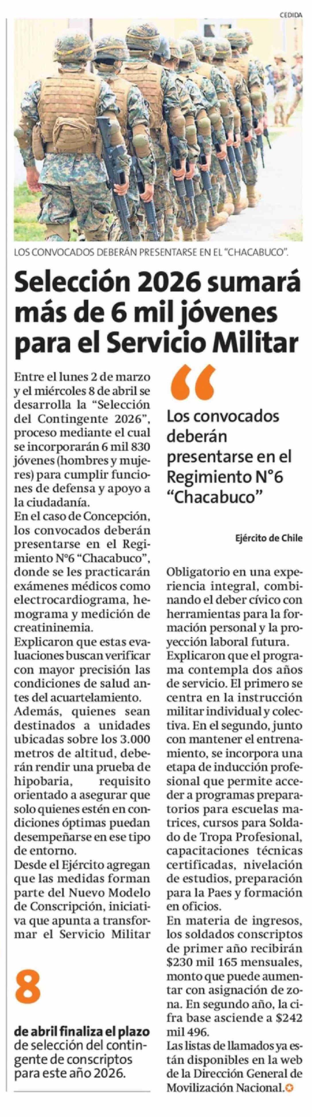 Título: Selección 2026 sumará más de 6 mil jóvenes para el Servicio Militar