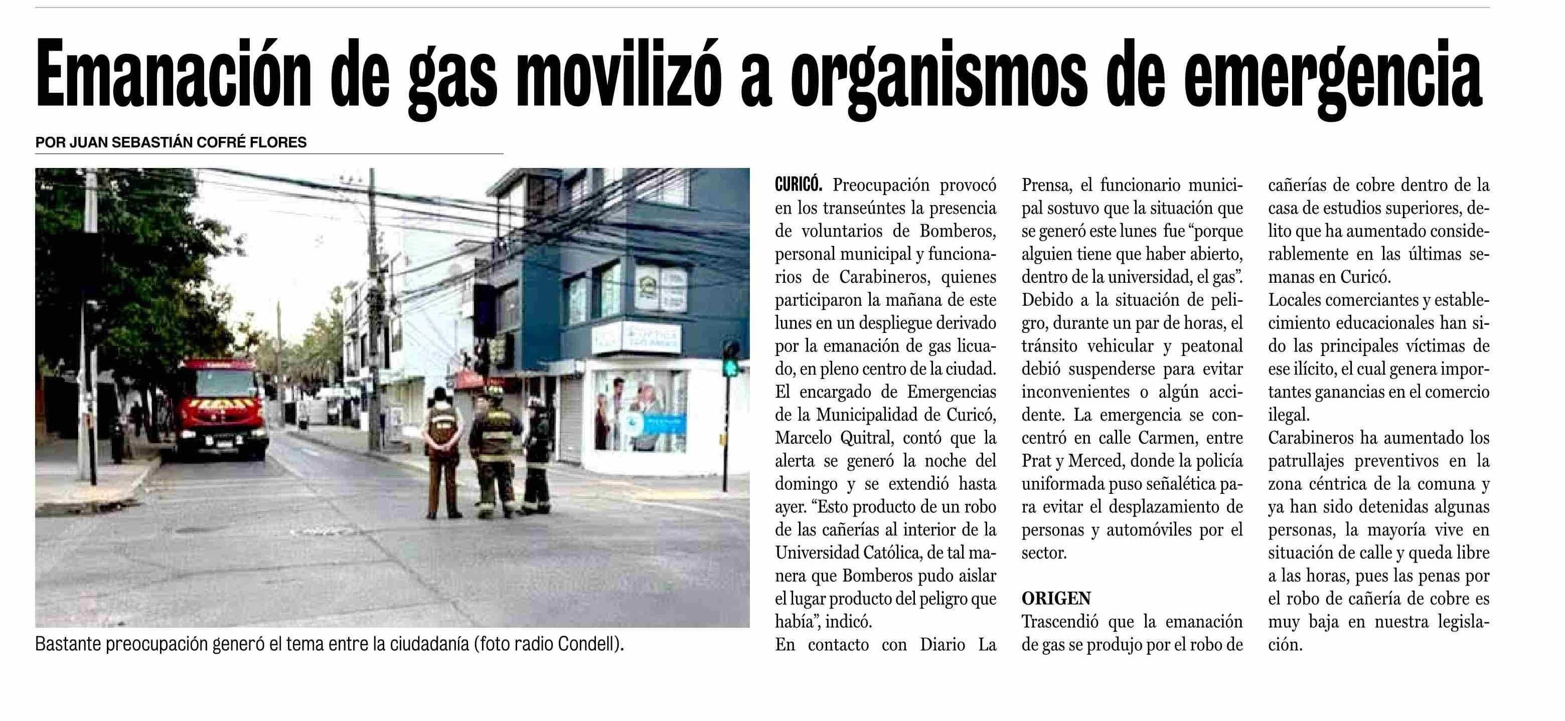 Emanación de gas movilizó a organismos de emergencia