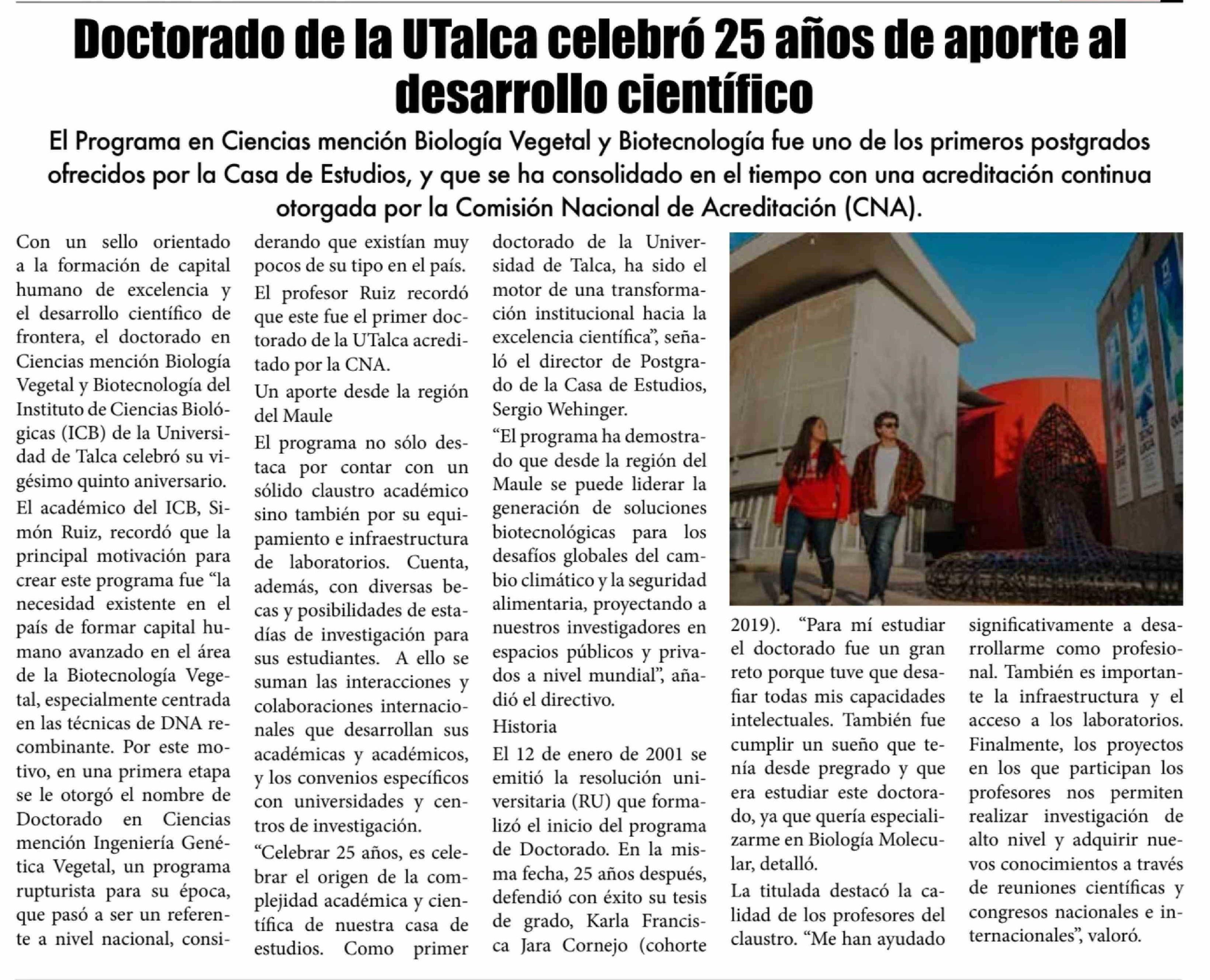 Título: Doctorado de la UTalca celebró 25 años de aporte al desarrollo científico
