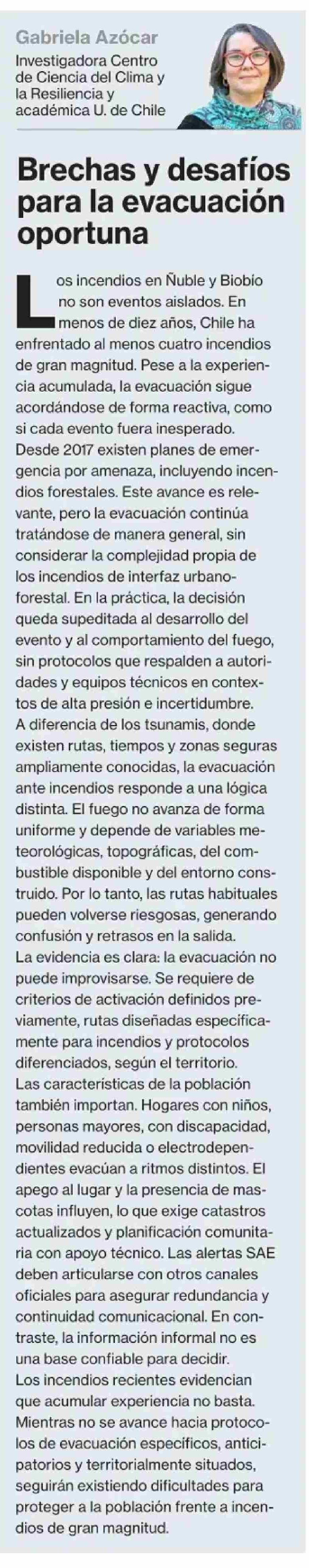 Columnas de Opinión: Brechas y desafíos para la evacuación oportuna