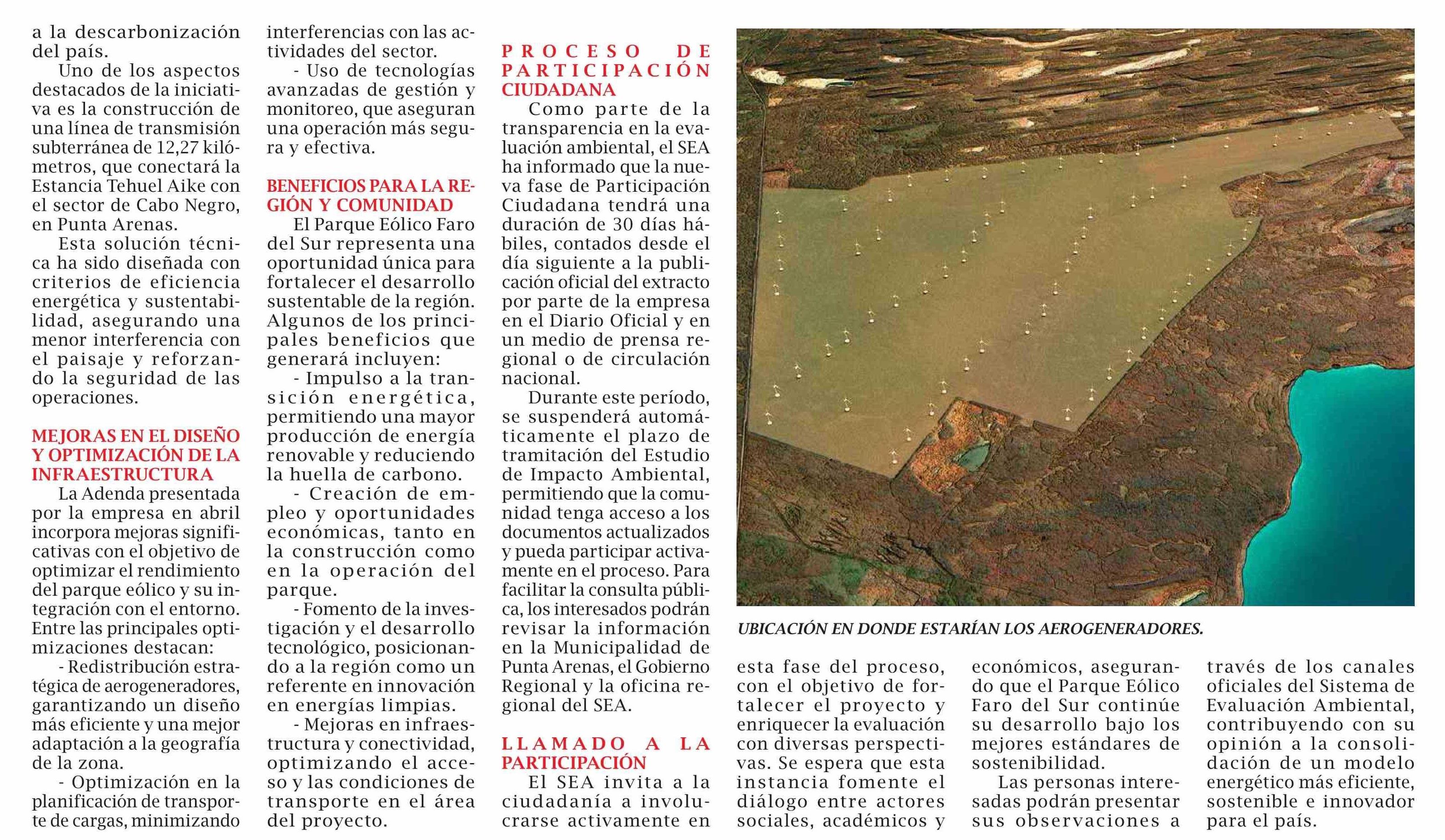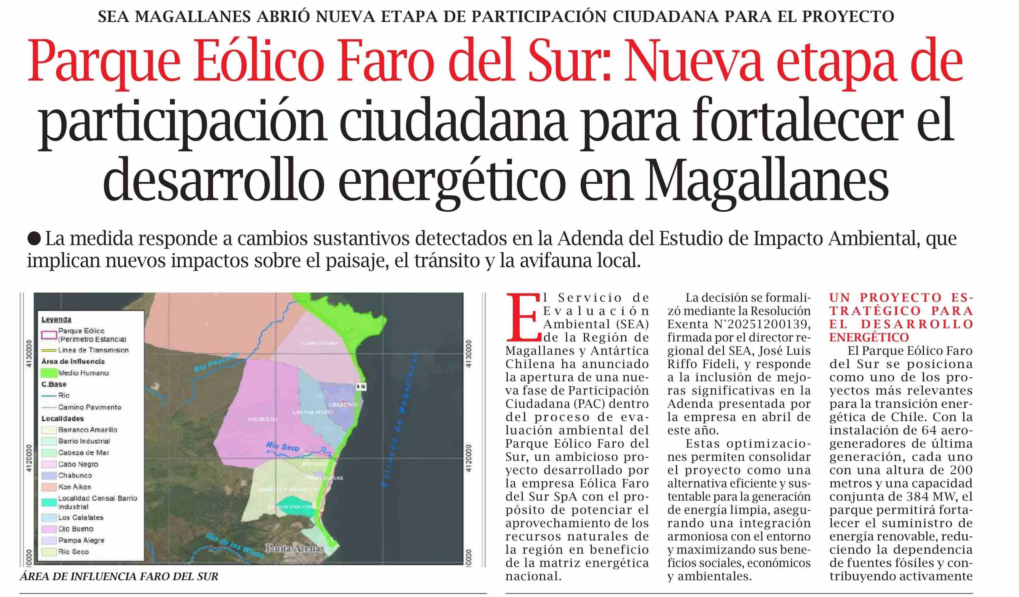 Parque Eólico Faro del Sur: Nueva etapa de participación ciudadana para fortalecer el desarrollo energético en Magallanes