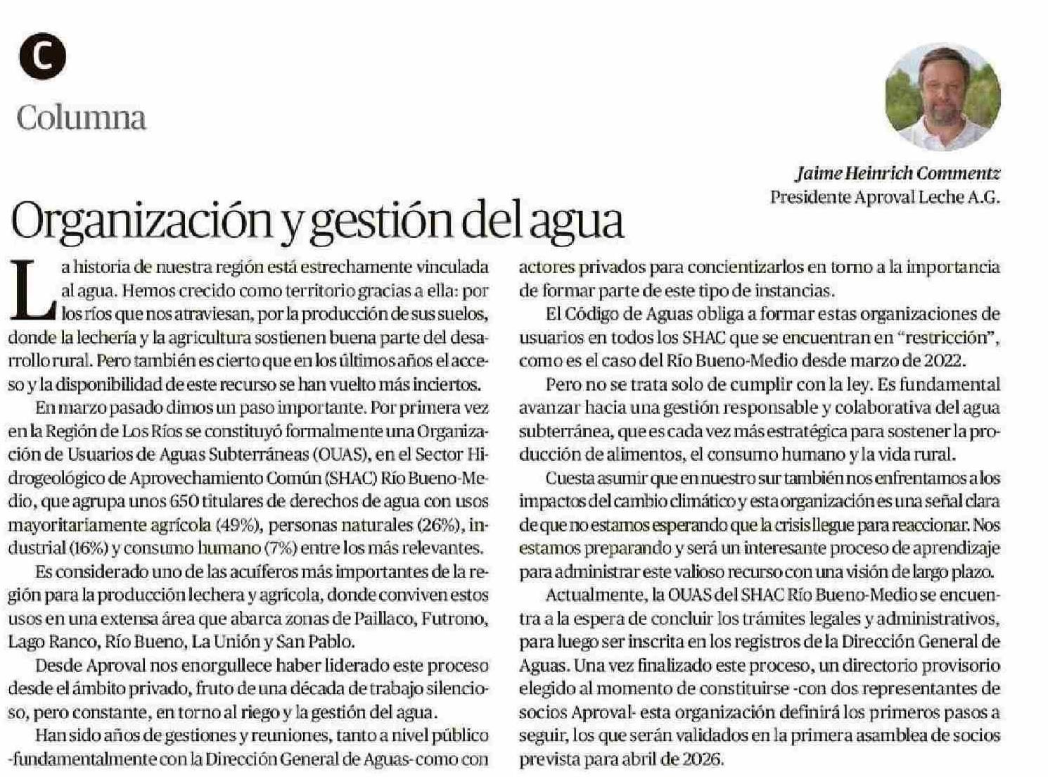 COLUMNAS DE OPINIÓN: Organización y gestión del agua