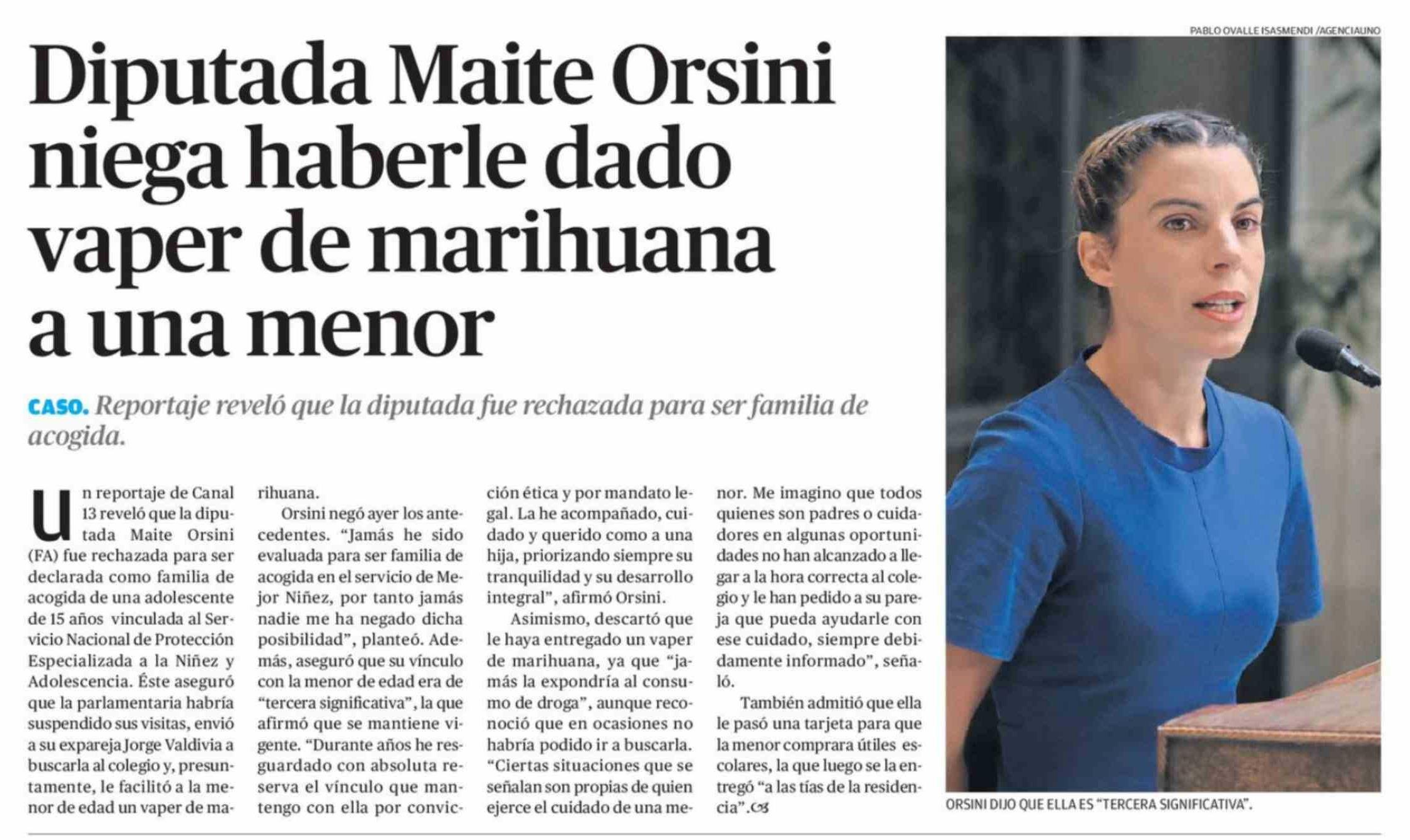 Diputada Maite Orsini niega haberle dado vaper de marihuana a una menor