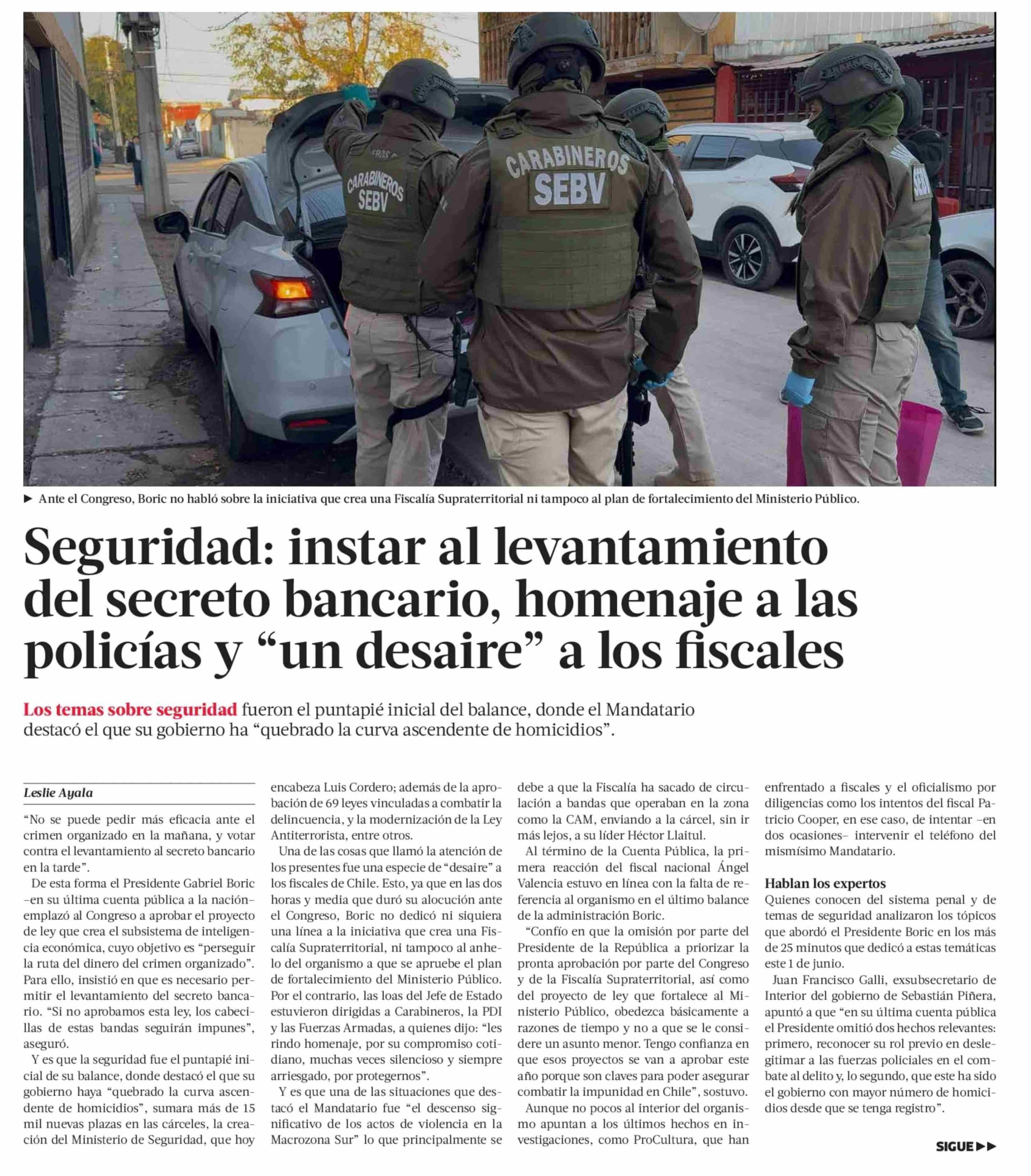 Seguridad: instar al levantamiento del secreto bancario, homenaje a las policías v “un desaire” a los fiscales