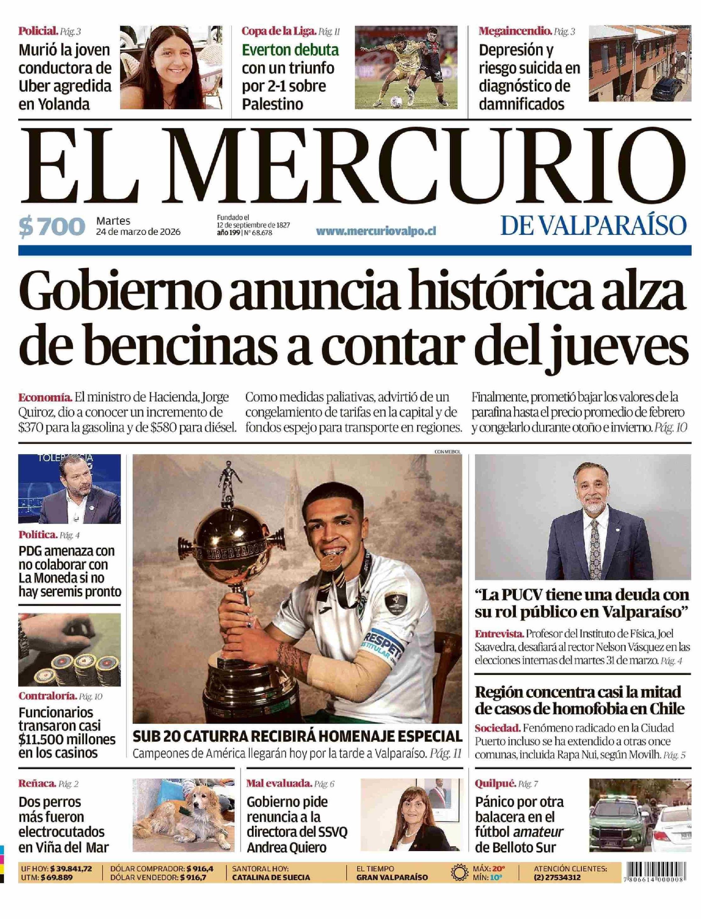 PORTADA EL MERCURIO DE VALPARAÍSO - CHILE